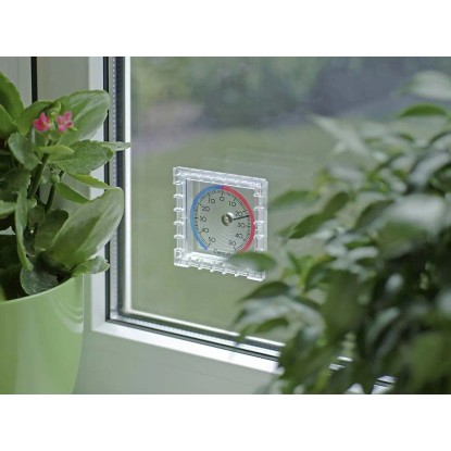 Akrylowy termometr okienny przeznaczony jest do mierzenia temperatury na zewnątrz. Ten termometr pogodowy montuje się do ramy okna za pomocą pasków samoprzylepnych. Kwadratowy kształt i przejrzysta obudowa sprawiają, że wygląda bardzo estetycznie. Daje możliwość odczytania temperatury, gdy jest się wewnątrz mieszkania. Termometr pokazuje temperaturę w zakresie od-50°C do +50°C. Jego skala jest wyraźna i czytelna.