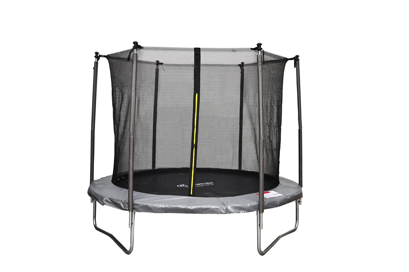 Model BASIC JUMP ma średnicę 244 cm i wysokość 51 cm. Podstawa wykonana jest z solidnych galwanizowanych rurek stabilnie osadzonych na trzech nogach (38 x 1,2 mm).