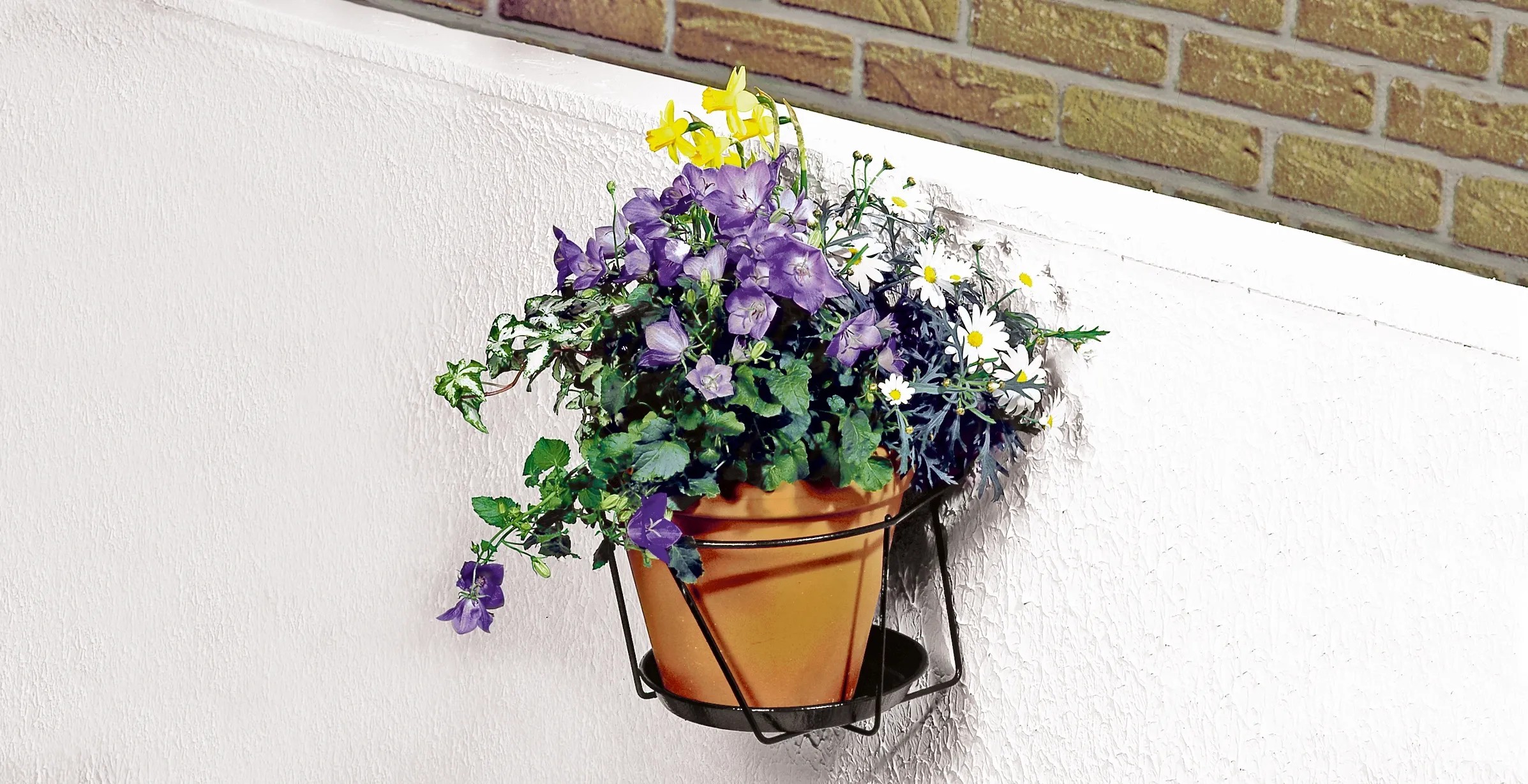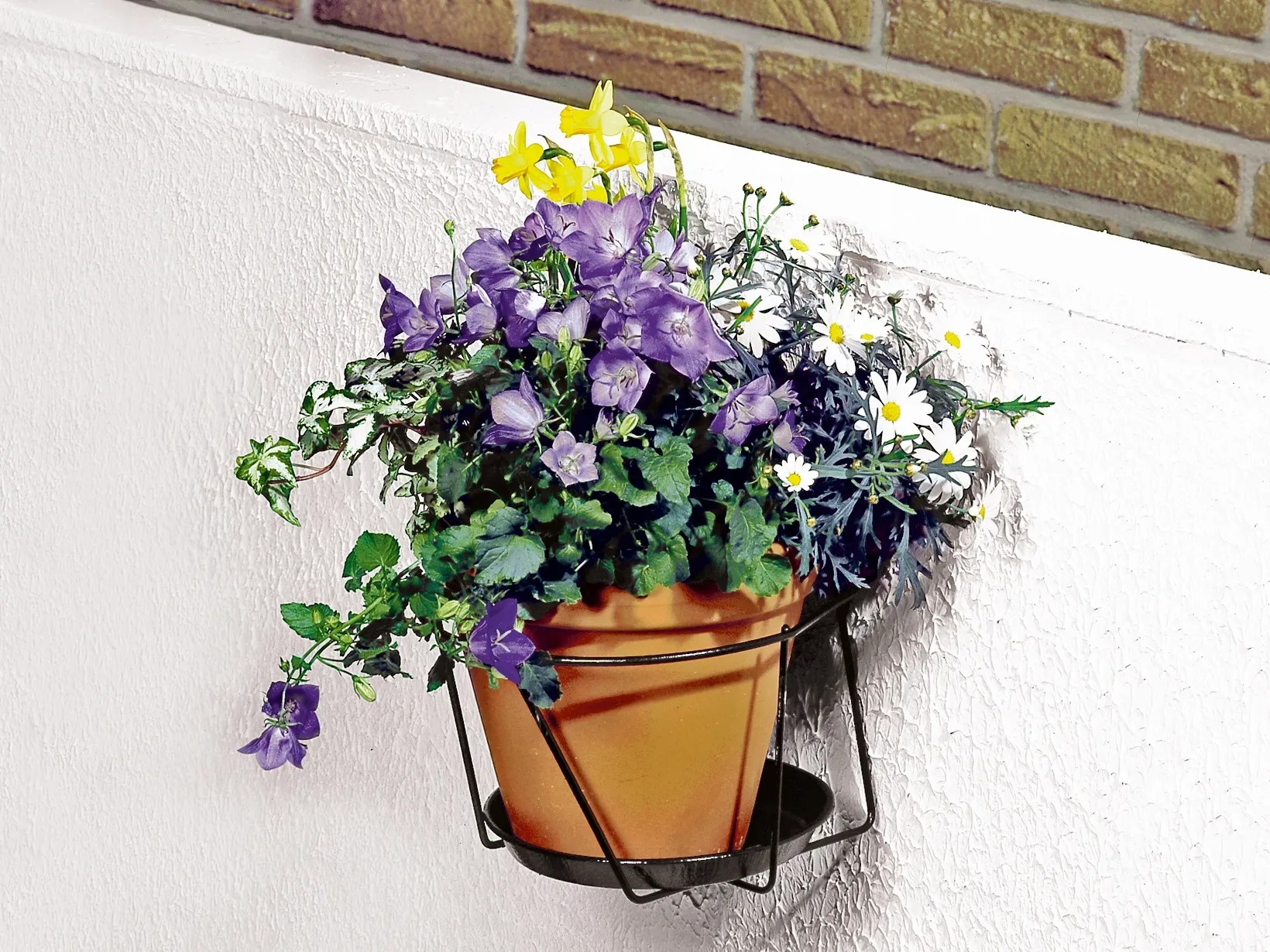 Lekki i stabilny kosz na doniczkę, do zawieszenia na balkonie bądź tarasie. Wykonany w całości z metalu. Świetnie sprawdzi na ścianach i kratkach ozdabiając przy tym nasz dom.