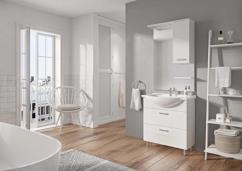Meble łazienkowe z serii Eve charakteryzują się wysoką funkcjonalnością. Dzięki użytym materiałom powierzchnie mebli są wytrzymałe i łatwe do utrzymania w czystości. Biały kolor sprawia, że dobrze wpisują się w dowolną aranżację, dodając przestrzeni elegancji. Minimalistyczna forma i nowoczesny styl wpływają na to, że nie przytłaczają przestrzeni, będą uniwersalnym elementem wystroju. Seria obejmuje szafki, słupki i inne akcesoria. Zestaw mebli łazienkowych to najszybszy sposób na stworzenie spójnej estetycznie i funkcjonalnej łazienki. Sprawdzi się w każdej łazience i ułatwi codzienną toaletę.