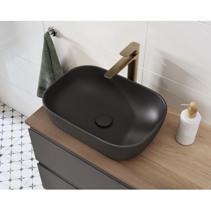 Umywalka nablatowa w kolorze antracytowym to nowoczesne i niezwykle stylowe rozwiązanie.