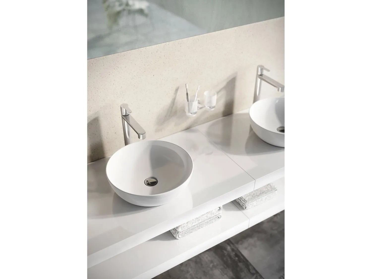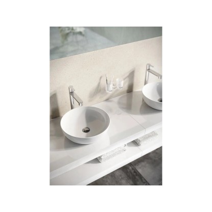 Designerska umywalka nablatowa wykonana w technologii Slim, charakteryzująca się cienkimi ściankami. Okrągły kształt o średnicy 40 cm bez otworu na baterię wymaga zastosowania armatury wolnostojącej lub ściennej. Jej lekka bryła nadaje wnętrzu nowoczesnego i ekskluzywnego charakteru. Ceramika najwyższej jakości gwarantuje nienaganny wygląd przez lata.