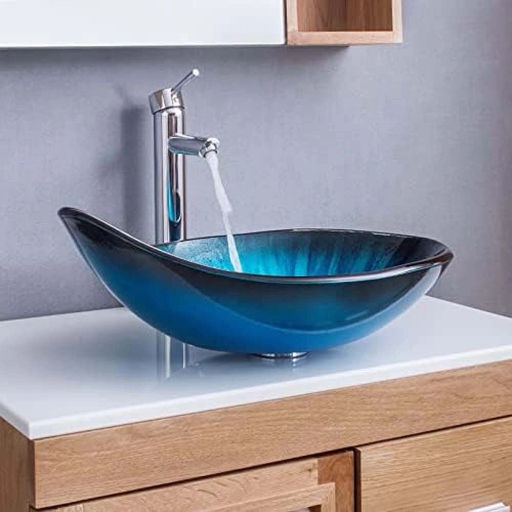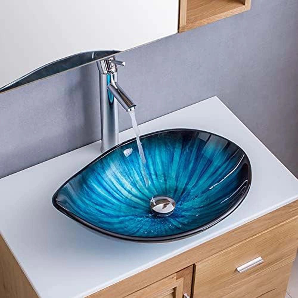 Umywalka nablatowa nablatowa szkło niebieska