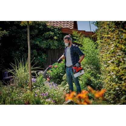 Opryskiwacz należy do rodziny narzędzi akumulatorowych działających w systemie Power X-Change. Jest to system urządzeń, które mogą pracować na jednym typie akumulatora.