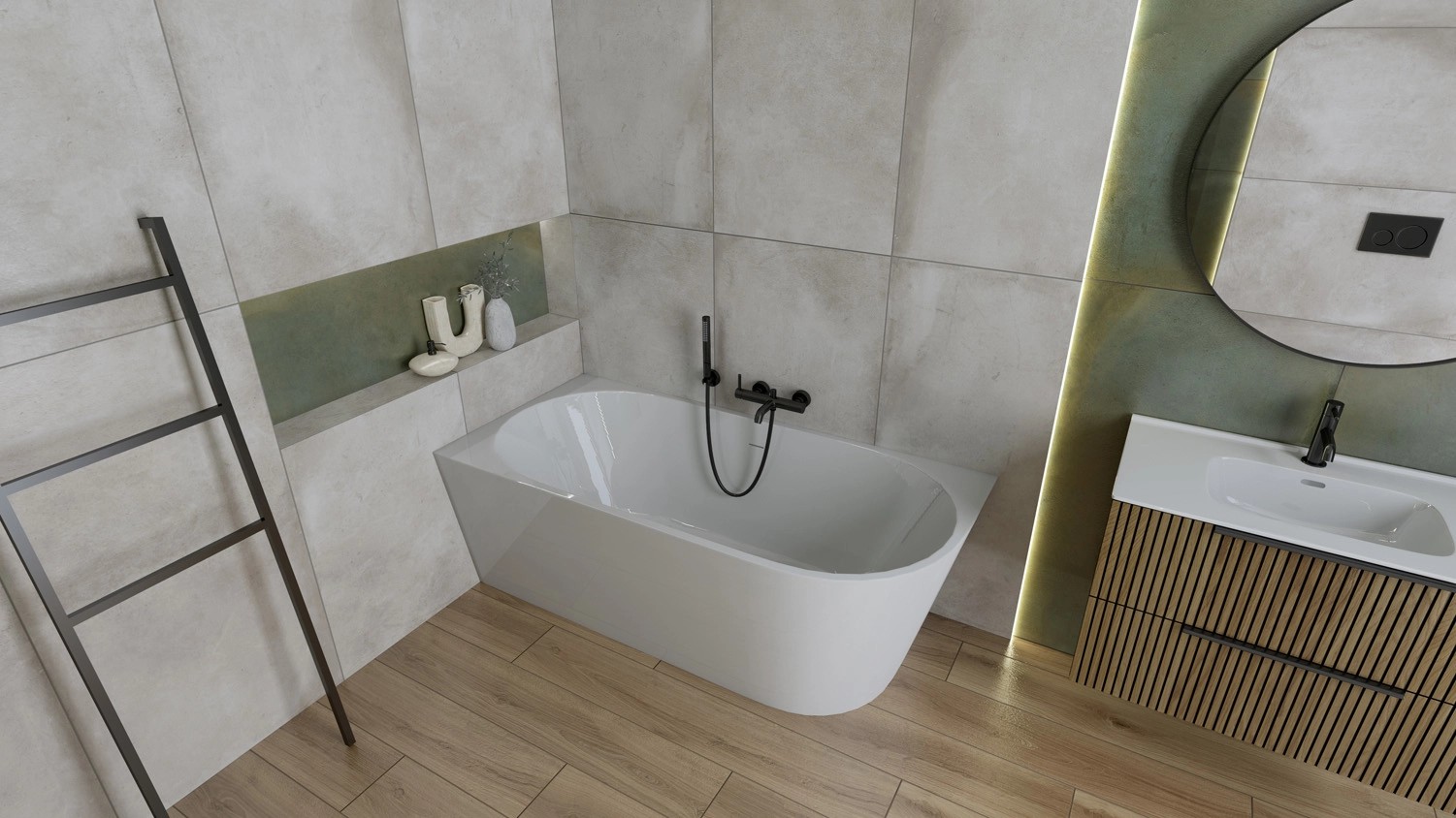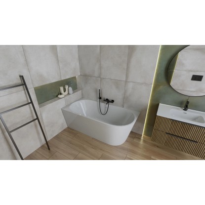 Wanna narożna wykonana z akrylu łączy nowoczesny design z trwałością i dobrymi właściwościami zatrzymywania ciepła. Ergonomiczny kształt narożny oszczędza miejsce i sprawdzi się w łazienkach o różnych rozmiarach. W zestawie otrzymujesz wannę wraz z syfonem i korkiem, co ułatwia szybką i bezproblemową instalację. Gładka, nieporowata powierzchnia akrylu jest łatwa w utrzymaniu czystości i odporna na przebarwienia. To praktyczne i estetyczne rozwiązanie dla osób szukających komfortu kąpieli przy jednoczesnym zachowaniu funkcjonalności.