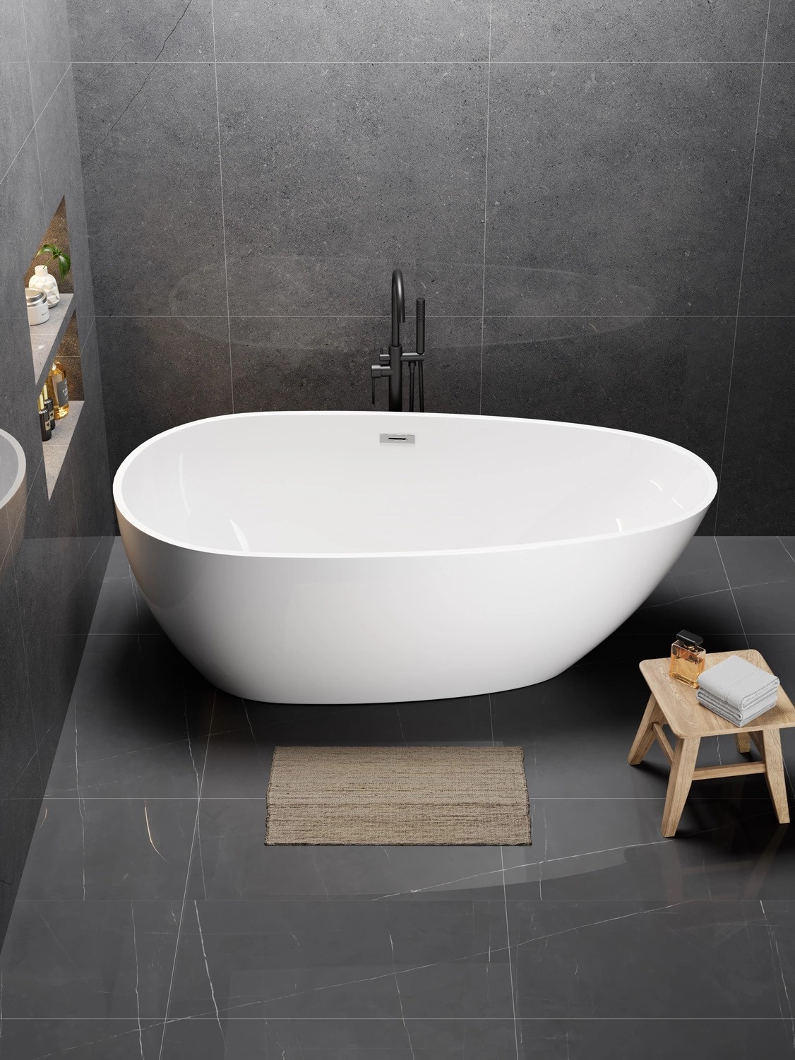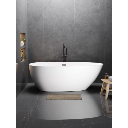 Odkryj komfort wanny wolnostojącej o wymiarach 175 x 75 cm, która stanie się centralnym punktem nowoczesnej łazienki. Została wykonana z wysokiej jakości akrylu sanitarnego, dodatkowo wzmocnionego włóknem szklanym i żywicą, co gwarantuje trwałość oraz długie utrzymywanie temperatury wody. Duża pojemność wynosząca 275 litrów do otworu przelewowego zapewnia w pełni komfortową i relaksującą kąpiel. Produkt jest gotowy do montażu- zestaw zawiera zarówno regulowane nóżki do idealnego wypoziomowania, jak i pasujący syfon ze standardowym odpływem 50 mm.