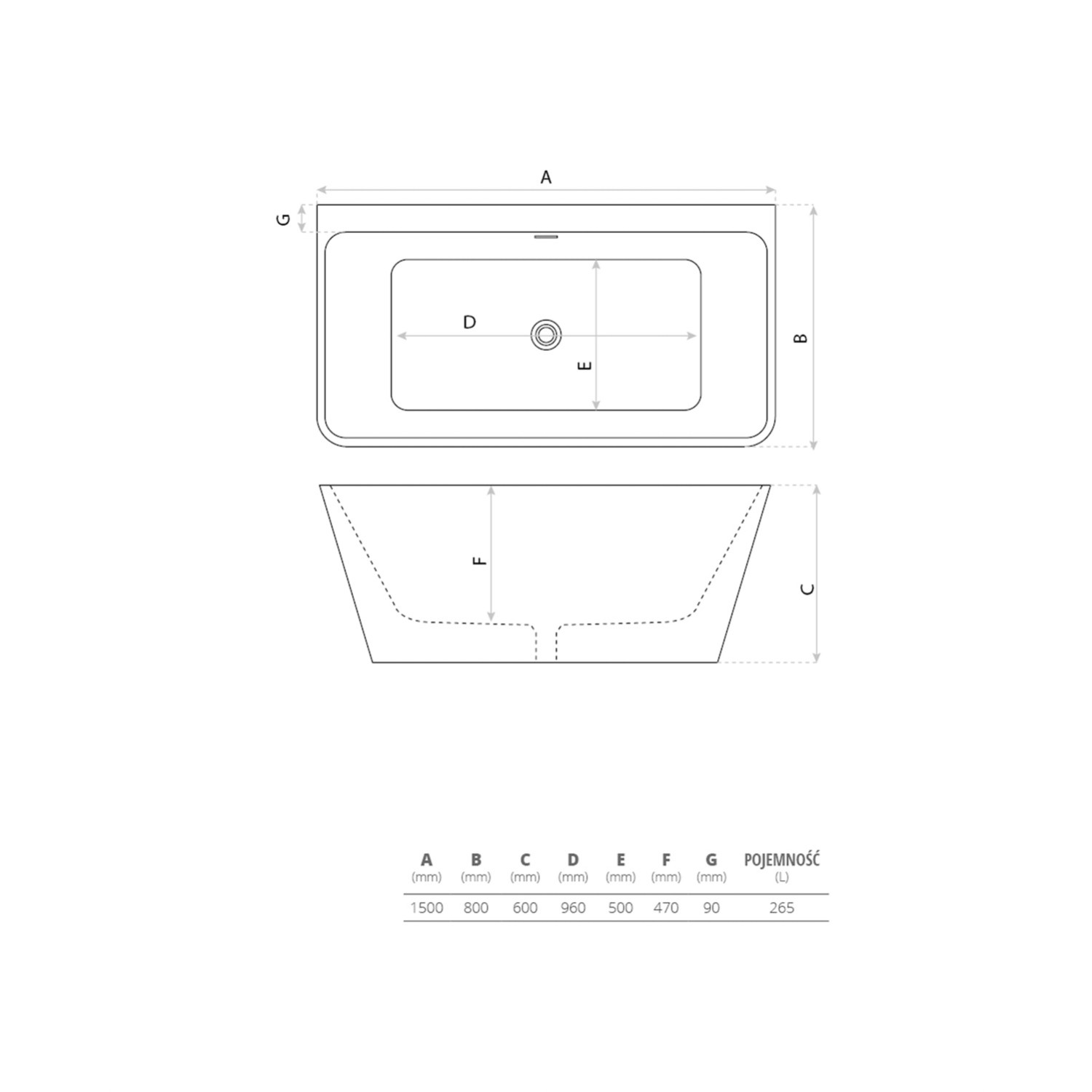 Wanna Mona 150 akryl wolnostojąca 150 x 80 x 60