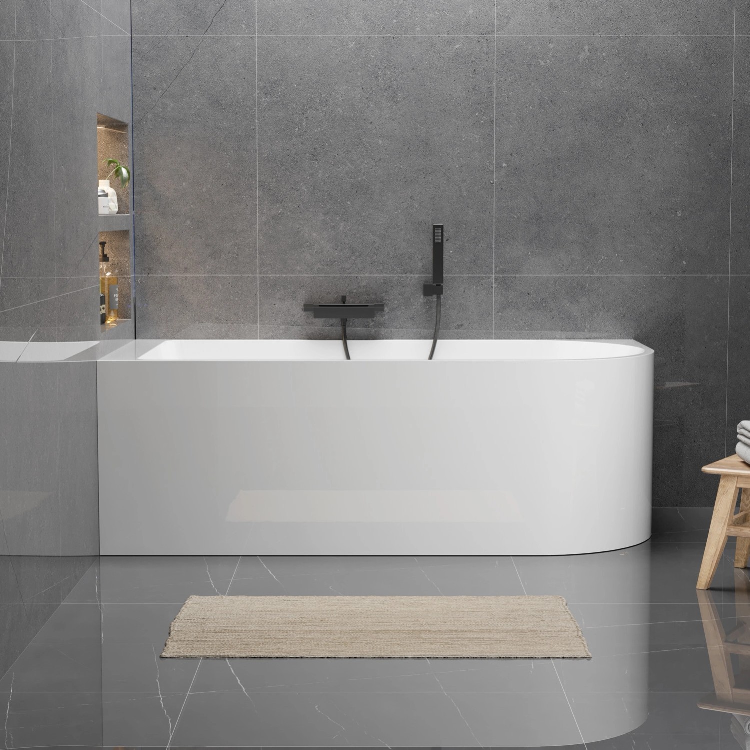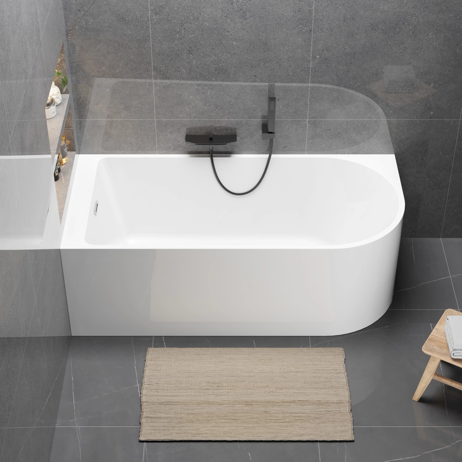 Wanna wolnostojąca przyścienna w wersji lewej, o wymiarach 160 x 75 cm, to doskonałe rozwiązanie do optymalnego zagospodarowania przestrzeni w łazience. Wykonana została z trwałego akrylu wzmocnionego włóknem szklanym i żywicą, co gwarantuje jej stabilność i łatwość w pielęgnacji. Mimo formy dopasowanej do ściany, wanna oferuje dużą pojemność 290 litrów (do przelewu), zapewniając komfortową kąpiel. W zestawie znajdują się nóżki do stabilnego posadowienia oraz kompletny syfon ze standardowym odpływem o średnicy 50 mm.