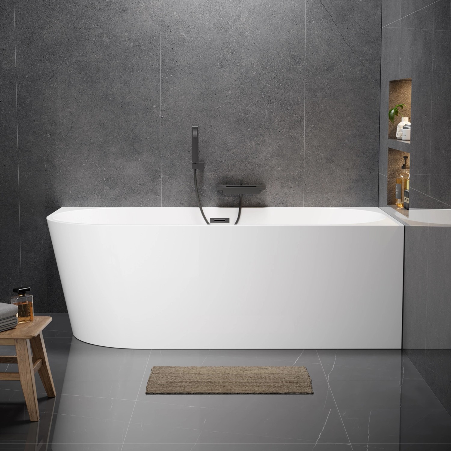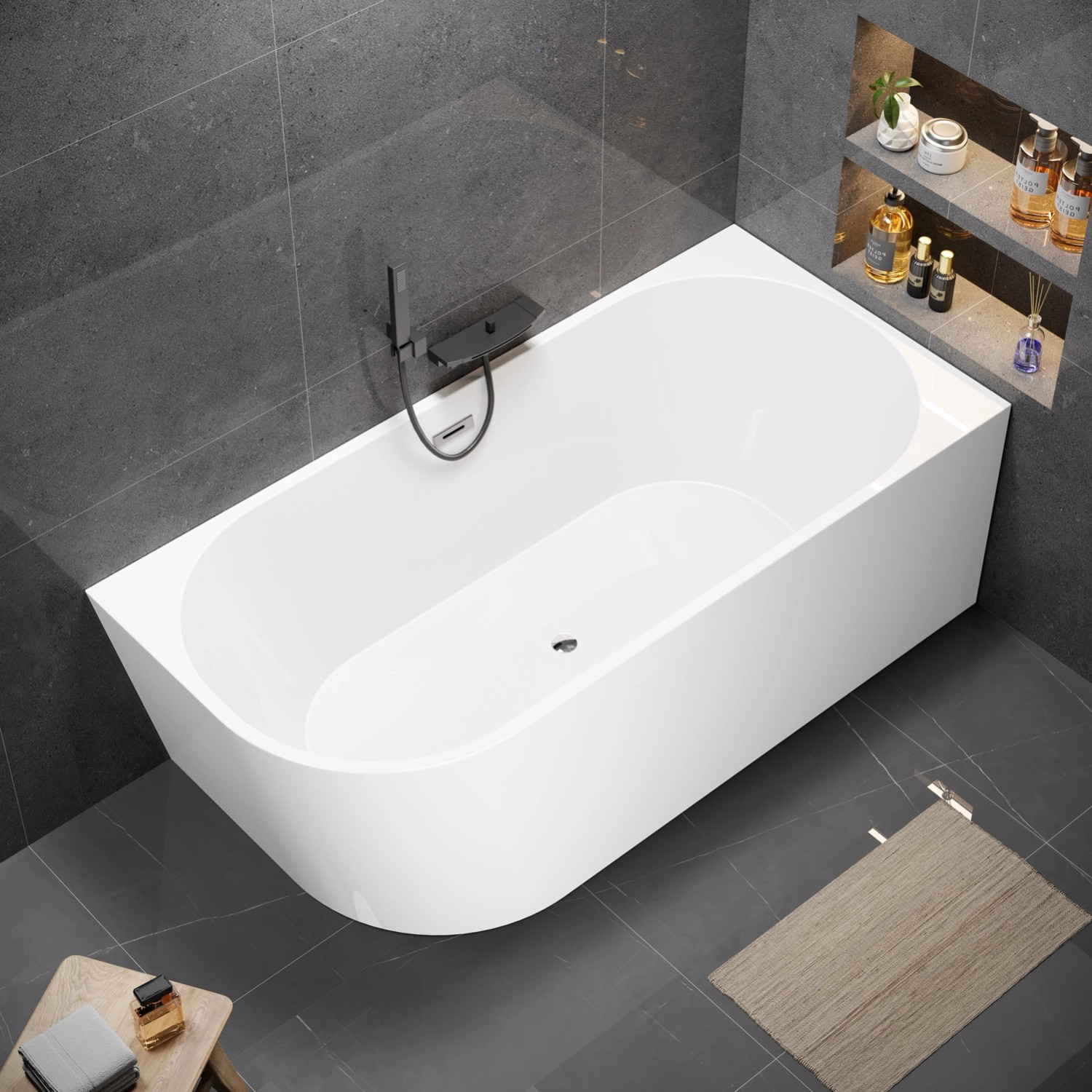 Funkcjonalna wanna wolnostojąca przyścienna (prawa) o wymiarach 170 x 80 cm to idealny wybór dla osób ceniących komfort i nowoczesny design. Wykonanie z trwałego akrylu wzmocnionego żywicą i włóknem szklanym sprawia, że wanna jest odporna na zarysowania i długo utrzymuje ciepło. Duża pojemność 337 litrów (do otworu przelewowego) pozwala na w pełni odprężającą kąpiel i głębokie zanurzenie. Produkt sprzedawany jest z kompletem akcesoriów- regulowanymi nóżkami oraz syfonem (odpływ 50 mm), co zapewnia łatwą instalację.