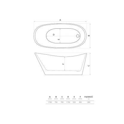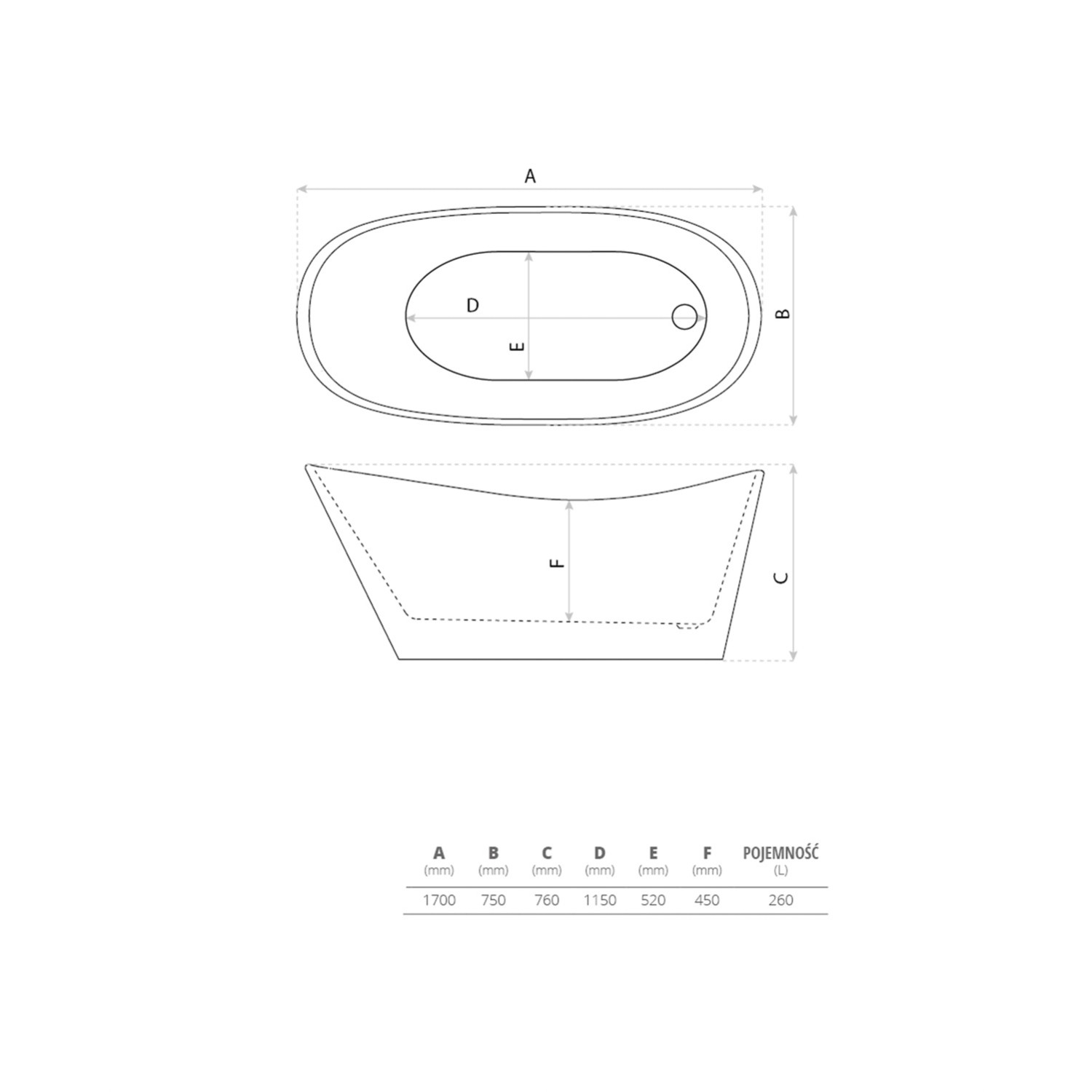 Wanna Side 170 akryl wolnostojąca 170 x 75 x 76