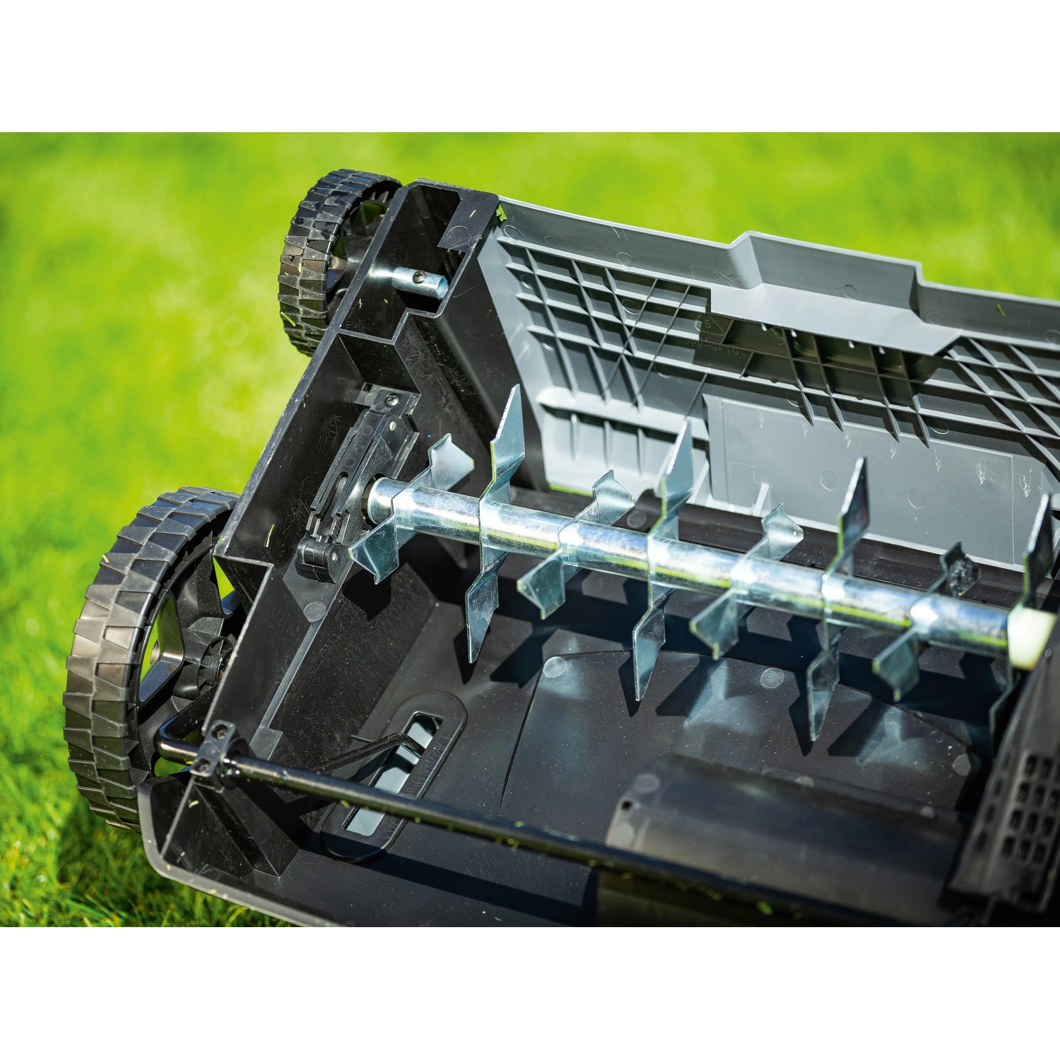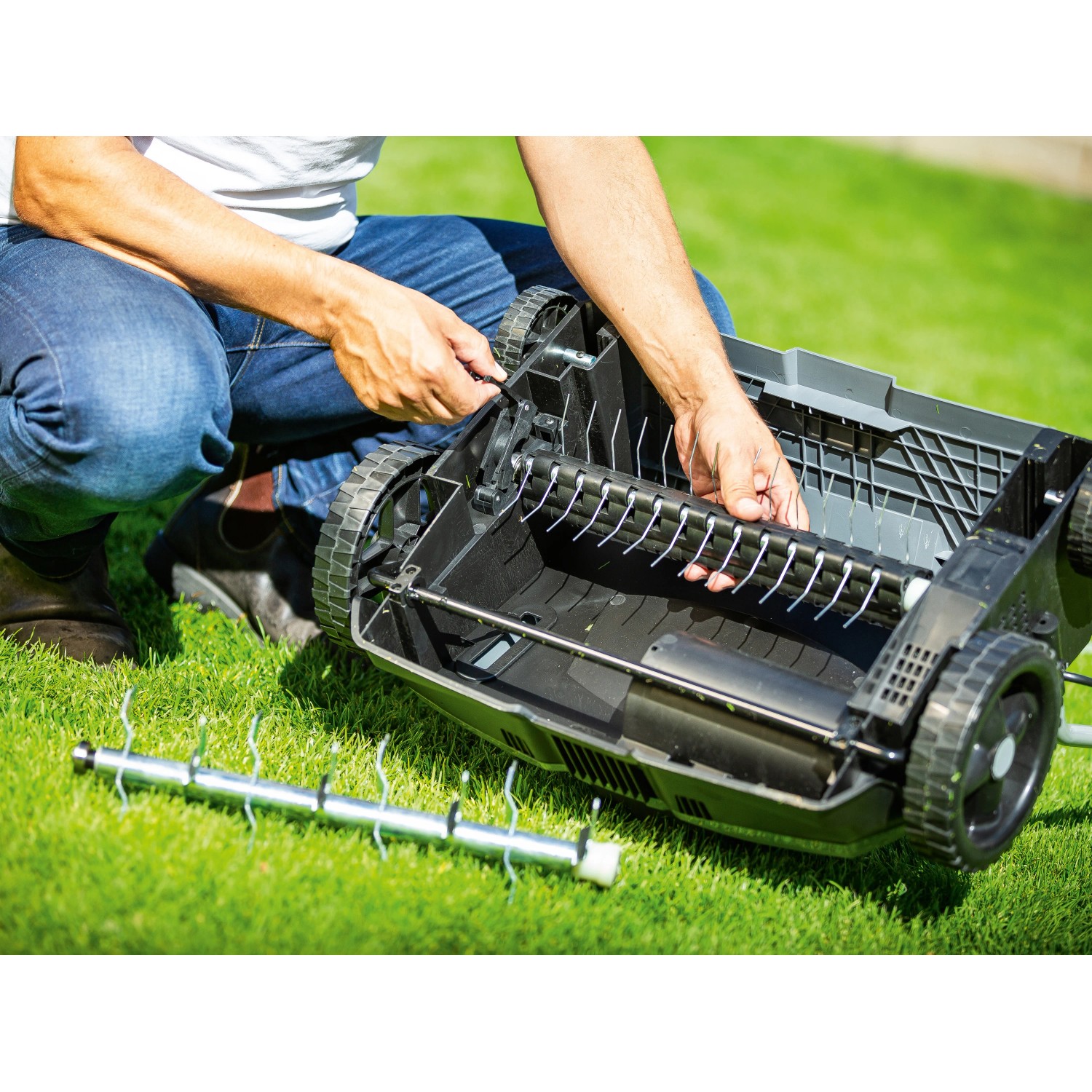 Mocne i niezawodne narzędzie ogrodnicze, które idealnie nadaje się do profesjonalnego wertykulacji mniejszych powierzchni. Dzięki wysokiej jakości wyposażeniu składającemu się łącznie z 8 noży, wał nożowy skutecznie usuwa chwasty i mech, łącznie z korzeniami. Trwała obudowa z tworzywa sztucznego podkreśla solidność urządzenia. Wertykulator ten jest szczególnie zalecany do trawników o powierzchni do około 100 m2.