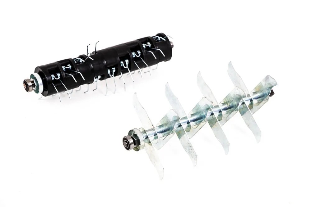 W zestawie znajdują się wałki aeratora i wertykulatora, które bez najmniejszego problemu może wymienić każdy użytkownik, wykręcając 2 śruby załączonym kluczem imbusowym. Głębokość napowietrzania gleby można wyregulować w 4-stopniowej skali w zakresie od -9 do 2 mm.