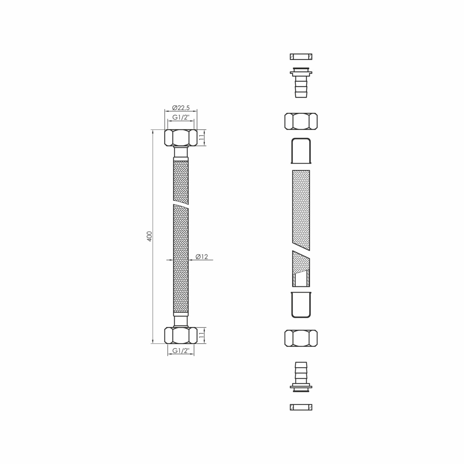 Tycner Wężyk elastyczny 40 cm 1/2"x1/2"