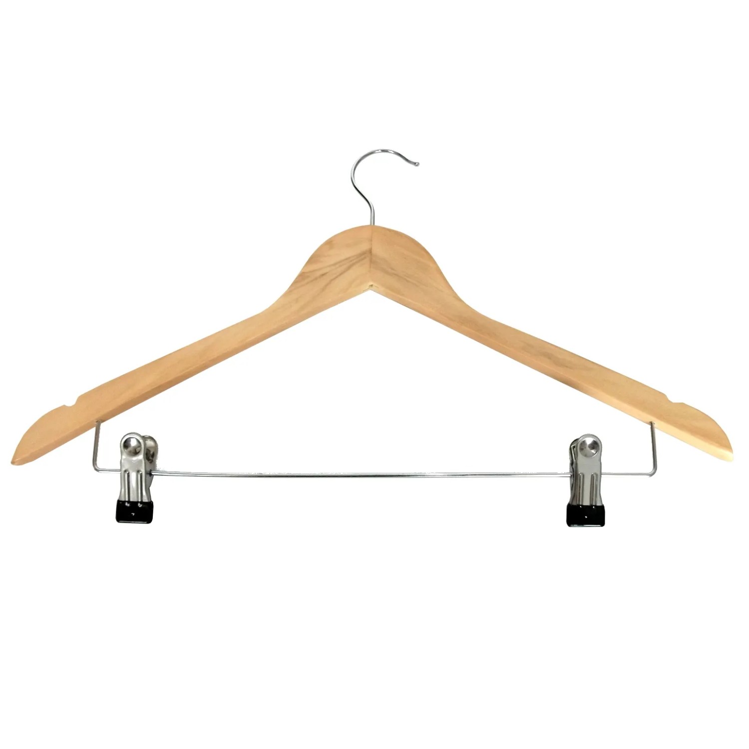 Uniwersalny wieszak, wykonany z drewna, idealnie nadaje się do wieszania zarówno górnej jak i dolnej częsci garderoby.