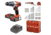 Do zestawu dołączone są dwa akumulatory Power X-Change 2,0Ah i szybka ładowarka oraz 64-częściowy zestaw akcesoriów, dostarczany w praktycznej walizce: 5 wierteł do drewna, 5 wierteł do betonu, 10 wierteł do metalu, 30 bitów, 10 nasadek sześciokątnych, 1 uchwyt do bitów, 1 fazownik, 1 miarka, 1 nóż.
