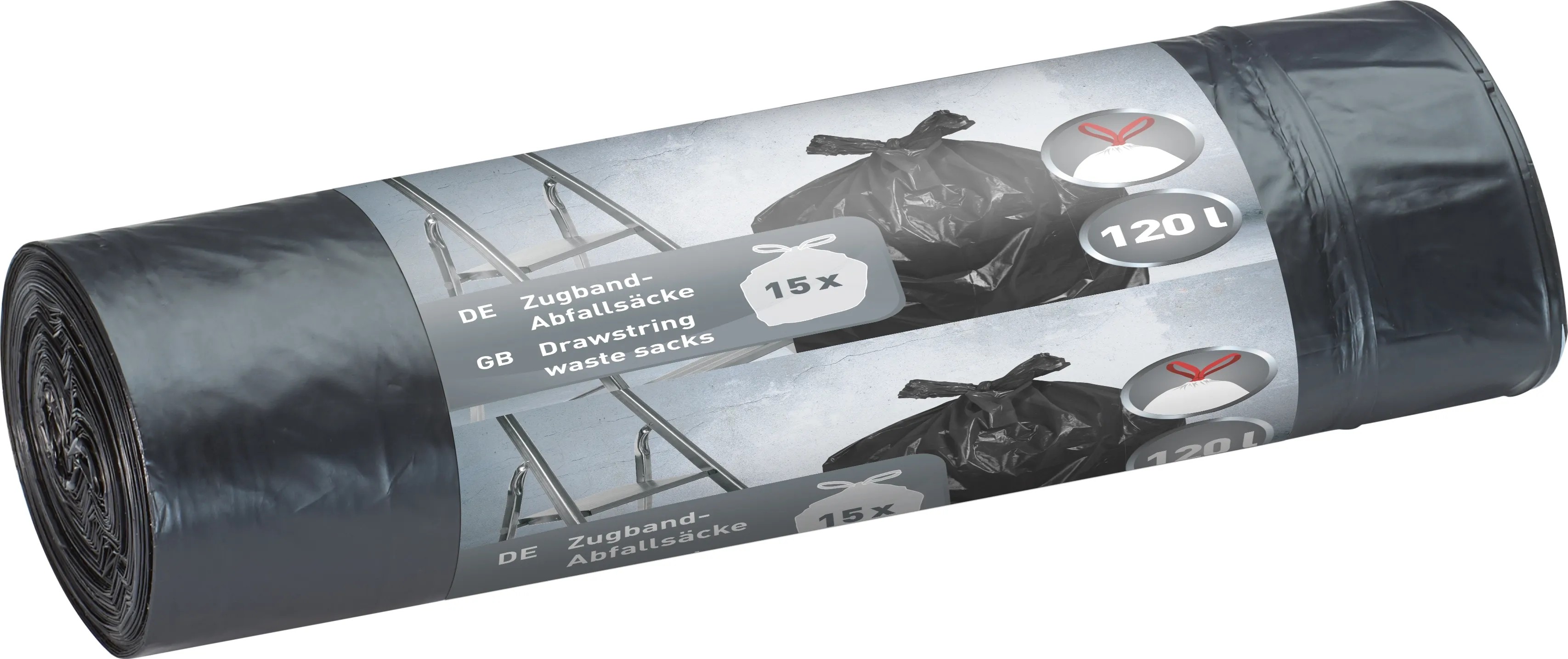 Worki na śmieci z taśmą czarne 120 l 15 sztuk