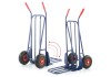 Wózek został wyposażony także w duże, pneumatyczne koła o średnicy 250 mm, które doskonale radzą sobie na różnych nawierzchniach, zarówno wewnątrz budynków, jak i na zewnątrz. Gumowe, bieżnikowane opony zapewniają dobrą przyczepność, a dętki skutecznie amortyzują nierówności terenu.