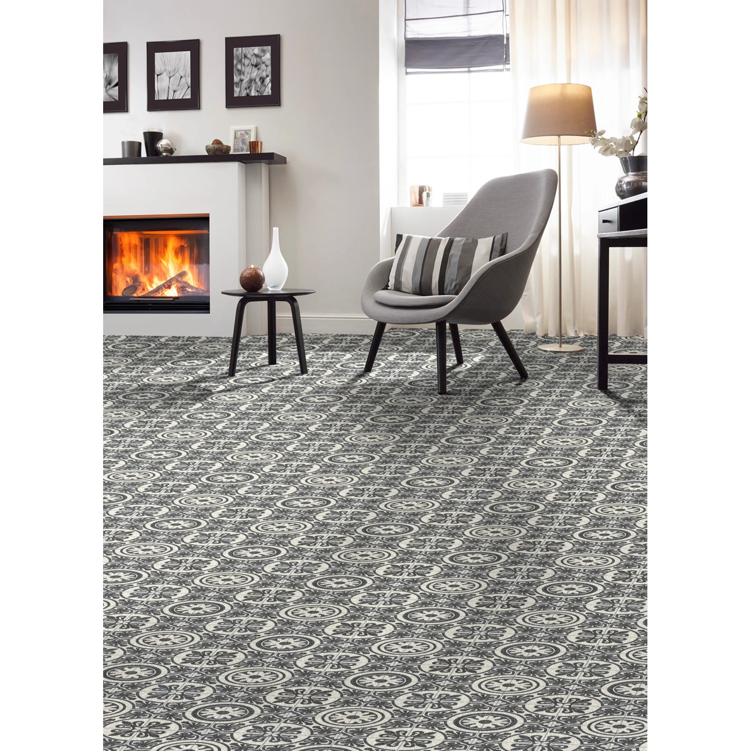 Wykładzina PCV Boho Chic Lagos 909D, o szerokości 3 m, firmy Chemifarb.