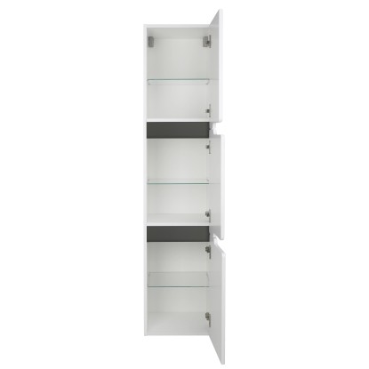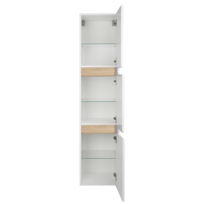Podwieszany słupek Spectra, firmy Astor, to doskonały dodatek do każdej łazienki. Odmieni wnętrze, nadając mu nowoczesny i elegancki charakter. Korpus wykonano z wytrzymałej płyty wiórowej pokrytej białym lakierem, dzięki czemu łazienka stanie się bardziej widna i przestrzenna. Fronty zaś powstały z płyty MDF w białej folii.