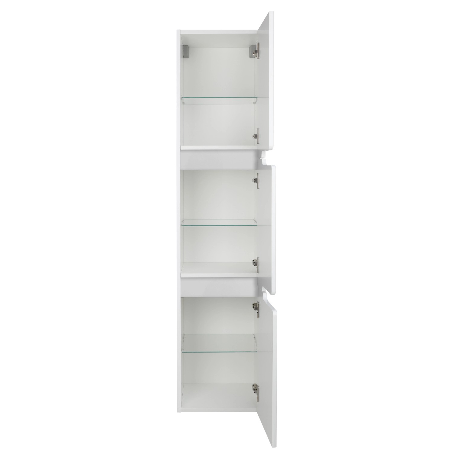 Wnętrze słupka obejmuje trzy półki, na których można przechowywać kosmetyki, akcesoria łazienkowe czy przybory toaletowe. Półki zostały wykonane z wytrzymałego szkła, są solidne i trwałe. Dzięki ich przezroczystości z łatwością odszukasz potrzebne akcesoria, pozwalają na lepszą organizację przestrzeni niż tradycyjne białe półki.
