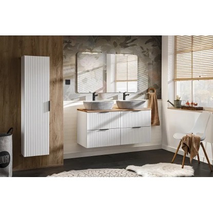 Słupek łazienkowy Adel 140 cm biały.Elegancki, podwieszany słupek łazienkowy z półkami będzie praktycznym i atrakcyjnym uzupełnieniem każdej łazienki. Matową biel słupka zestawiono z estetycznym wykończeniem wewnętrznym. Końcowy efekt wizualny uzupełniają uchwyty, których kolor możesz dopasować do swojej łazienki.