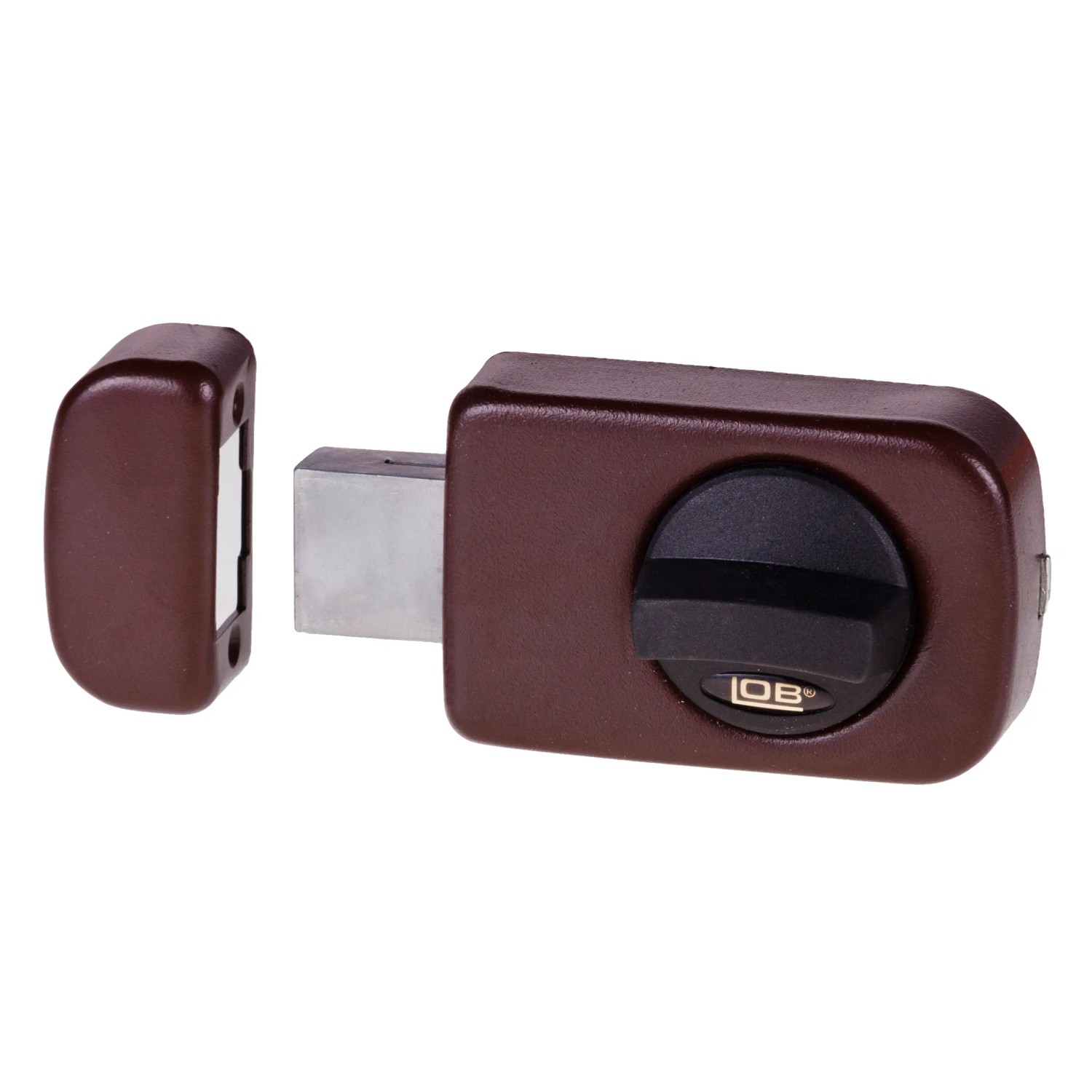 Zamek wierzchni zasuwkowy jednobębenkowy atestowany - brąz o wysokości 50 mm, marki Lob. Jest to atestowany zamek, idealny do zabezpieczania drzwi jako zamek dodatkowy obok zamka głównego.