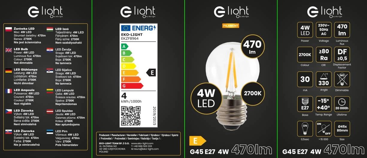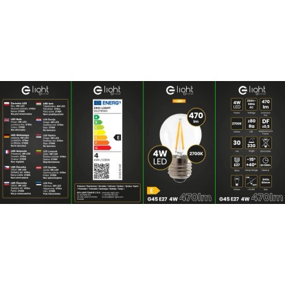 Eko-Light Żarówka filamentowa E27 G45 4W 470lm 2700K