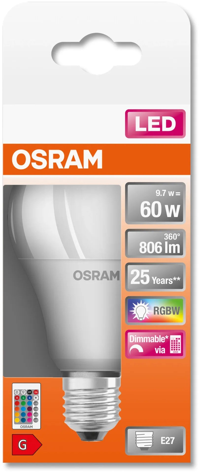 Osram Żarówka LED RGB 9,7W E27 806 lm 2700K