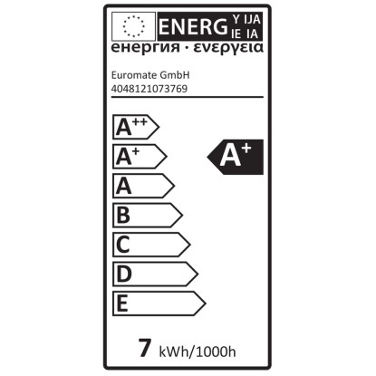 Energooszczędne rozwiązanie dla domów, mieszkań i wszelkich pomieszczeń użytkowych. Emituje ciepłą białą barwę światła o temperaturze barwowej 3000K, dzięki czemu nie męczy oczu. Posiada klasę energetyczną A+, gwarantującą niskie zużycie energii. Kąt rozsyłu światła wynosi 240 st. Strumień świetlny oscyluje na poziomie 560 lm. Żarówka jest zamiennikiem tradycyjnej żarówki o mocy 45W.
