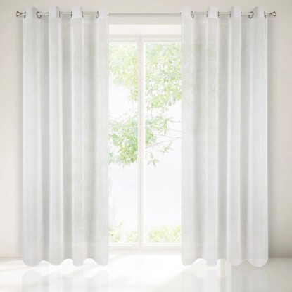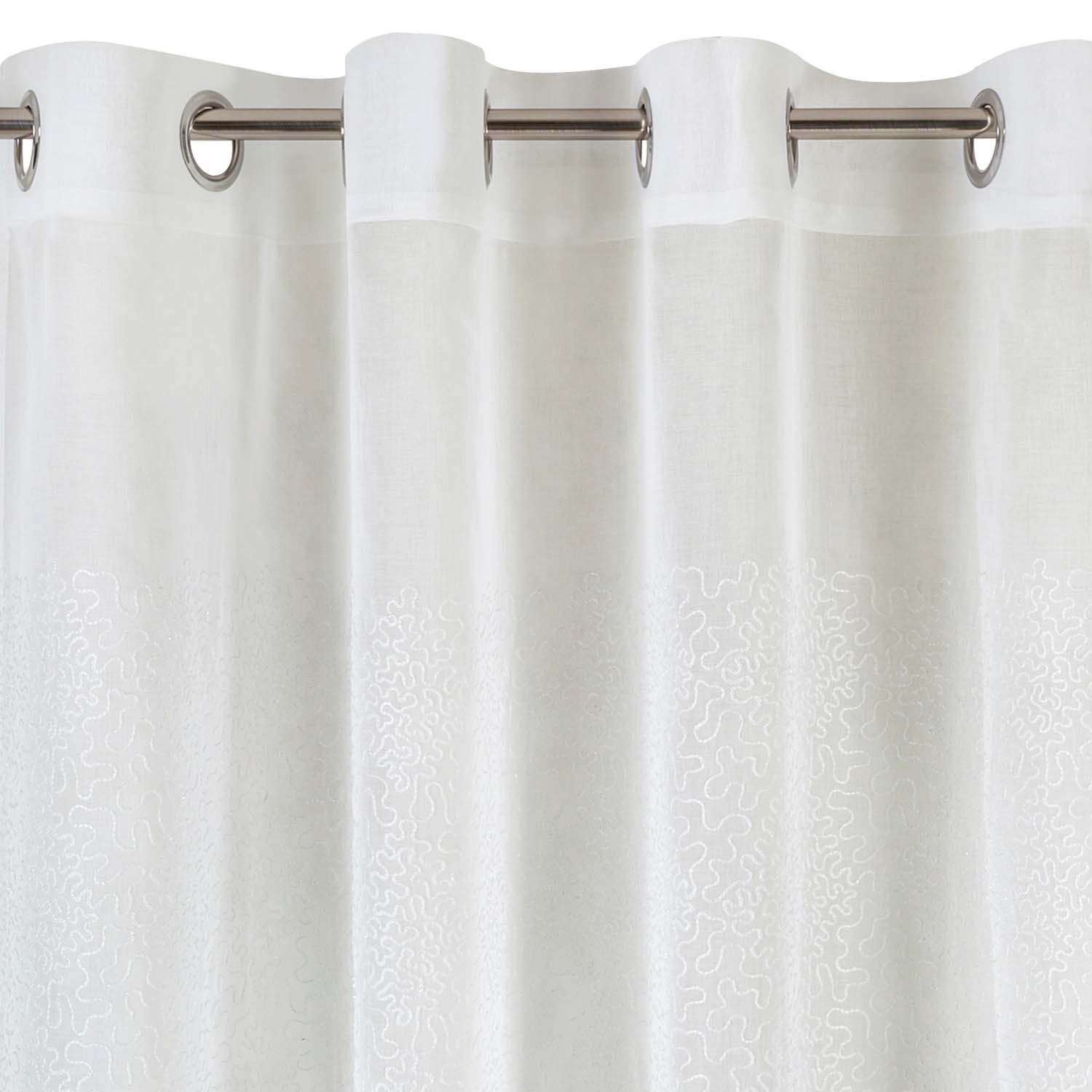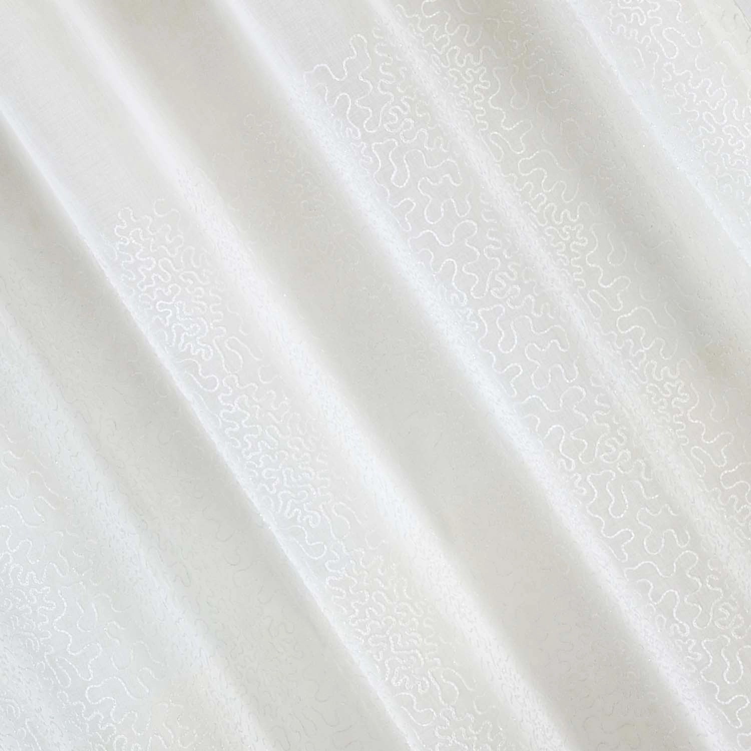 Firana gotowa z nieregularnym haftem i dodatkiem błyszczącej nici.