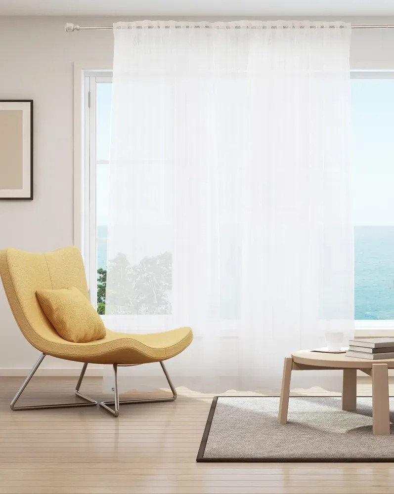 Firana uszyta z lekkiej siatki w kolorze białym. Gotowa do zawieszenia w oknie firana na taśmie ułatwiającej szybkie umieszczenie na karniszu. Firana dzięki swojej prostocie sprawdzi się w wielu wnętrzach.