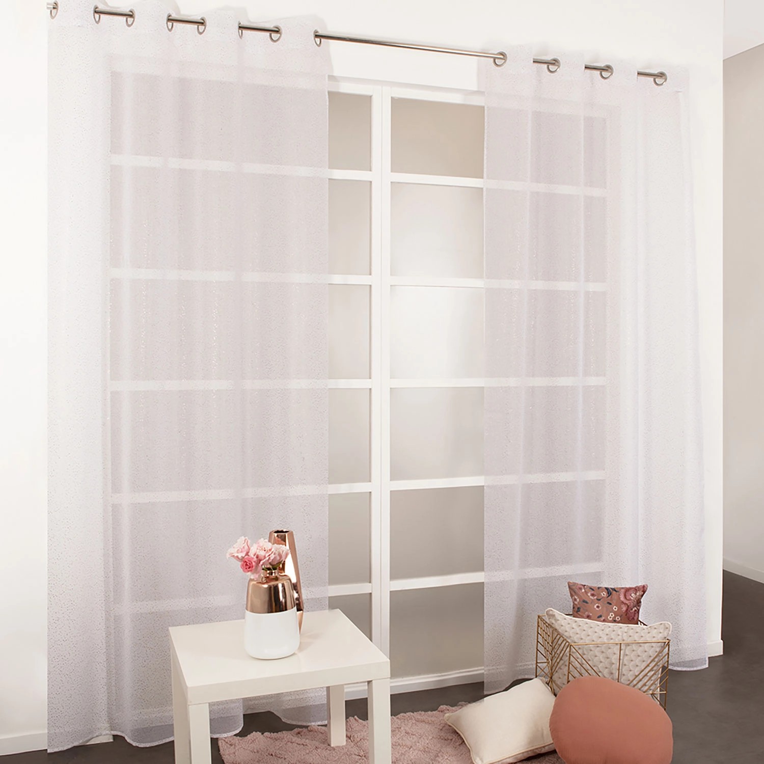Firana PEARL na przelotkach 140 cm x 260 cm miedziana