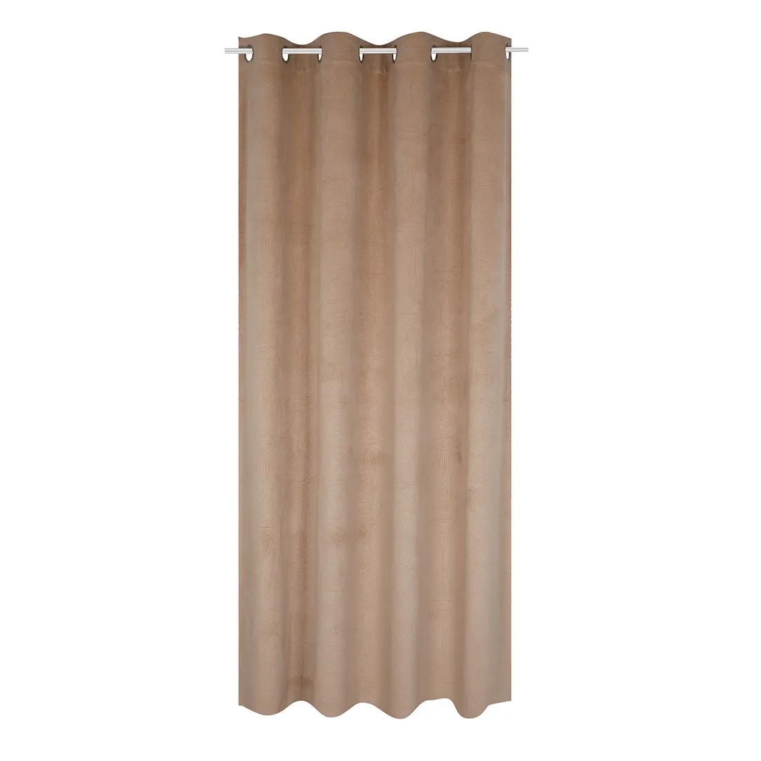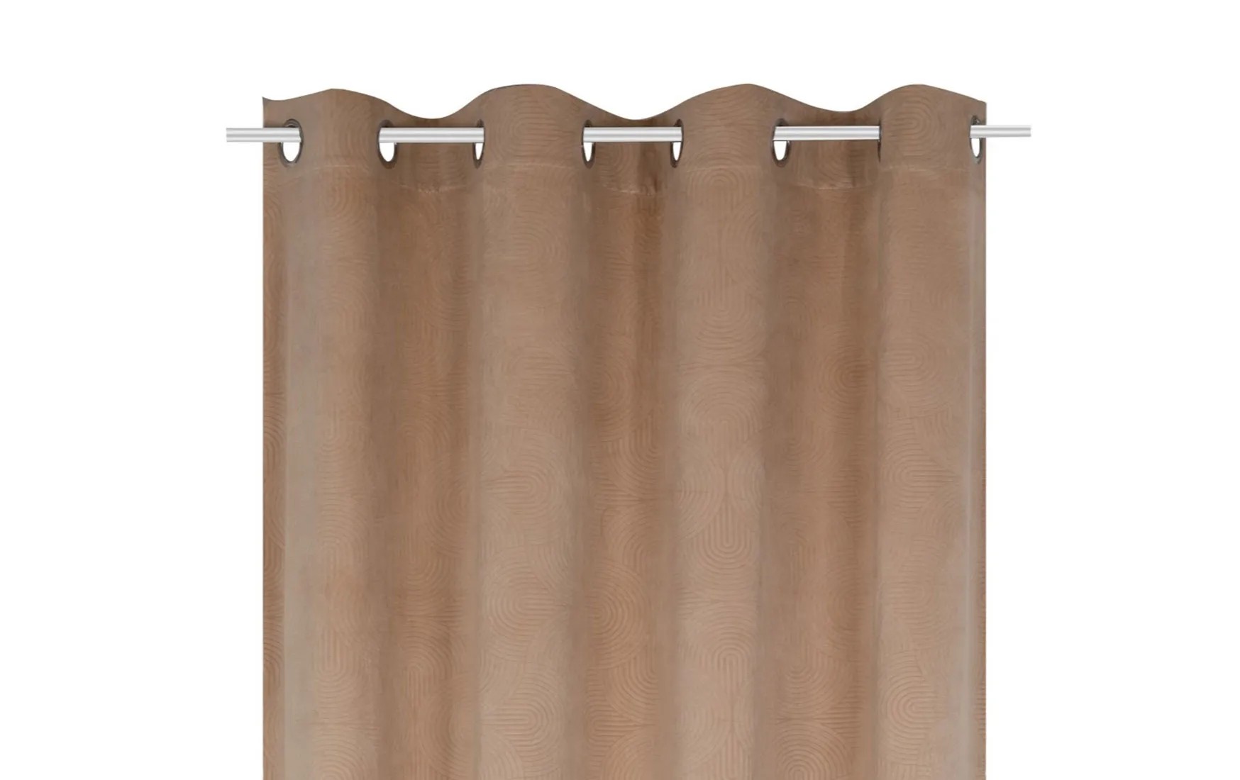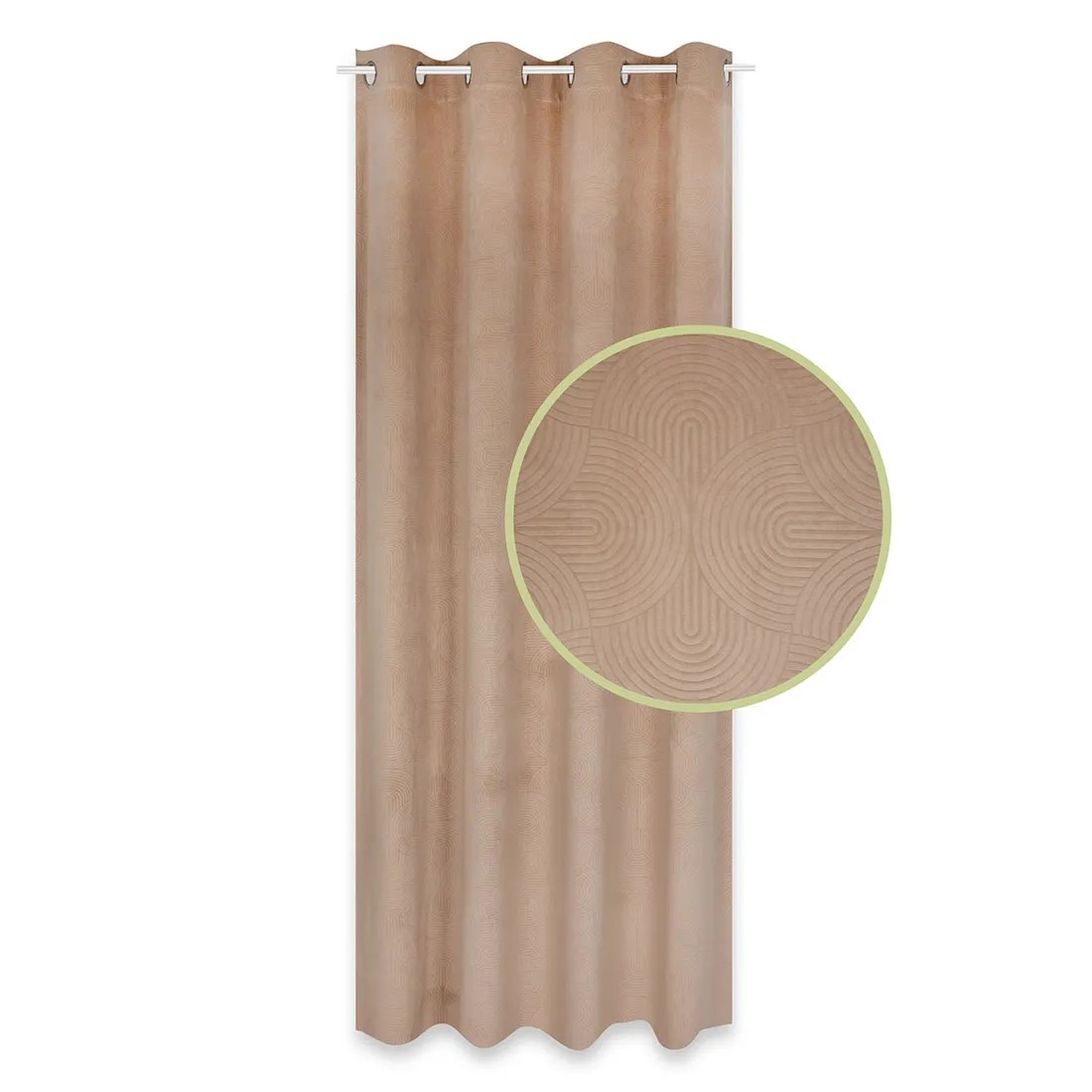 Zasłona welwetowa na taśmie w wytłoczony wzór geometryczny. Dzięki taśmie z tunelem zasłona nadaje się do zawieszenia na karnisz oraz szynę. Wyjątkowo wygodna w użytkowaniu poprzez łatwe przesuwanie na rurce karnisza. Zasłona stanowi stylowy i elegancki element wykończeniowy każdego okna, jednocześnie podkreślając charakter: salonu, sypialni, gabinetu czy innego pomieszczenia. Sprawdza się jako pojedyncza ozdoba okna, jak również jako baza bogatszej kompozycji.