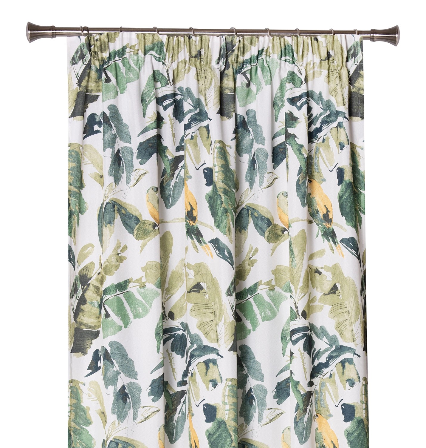 Piękna, modna, drukowana zasłona ozdobiona wzorami roślinnymi, wykonana z matowej tkaniny o splocie oxford. Dzięki mocowaniu na taśmie, zyskujesz możliwość uzyskania efektownego marszczenia oraz idealnej szerokości, co sprawia, że zasłona doskonale komponuje się zarówno z firankami, jak i jako samodzielny element dekoracyjny.