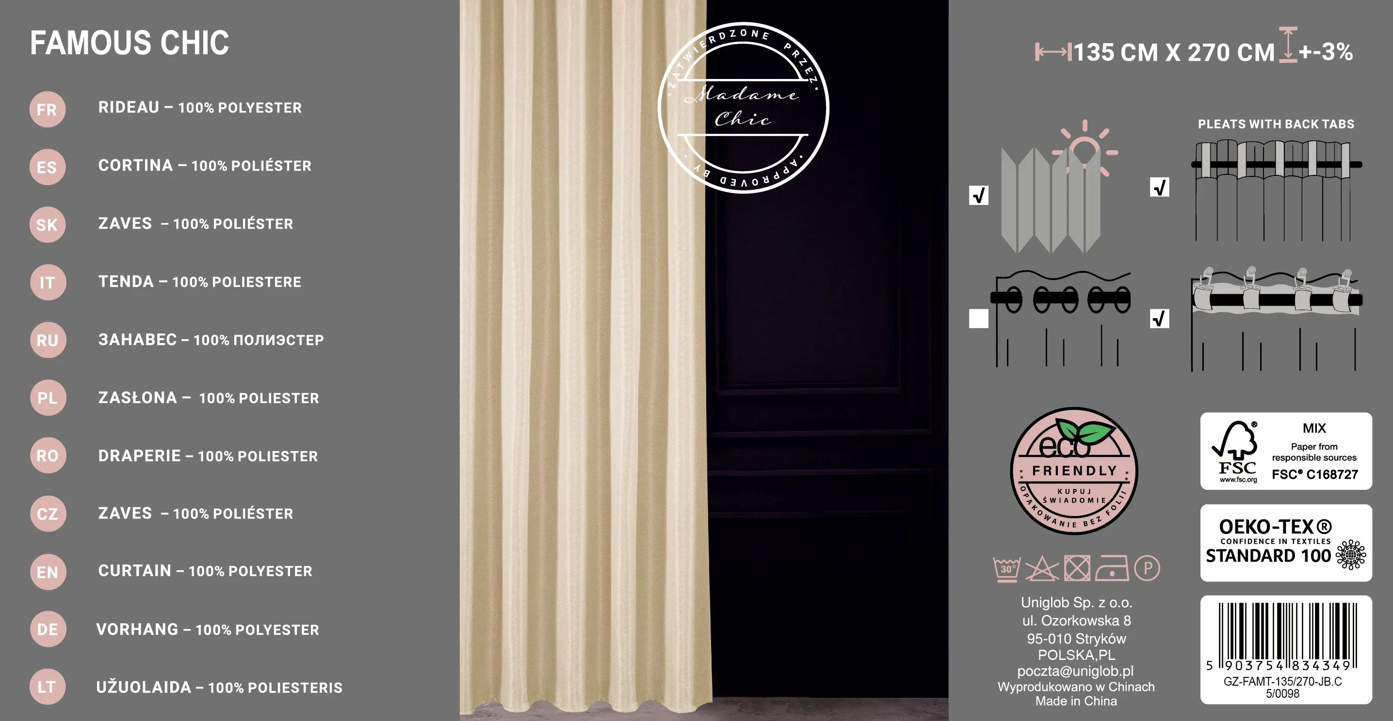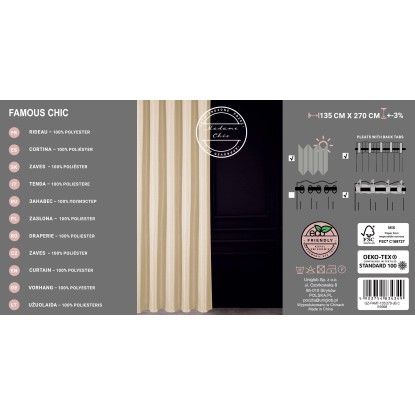Zasłona FAMOUS na taśmie 135 x 270 cm jasnobeżowa