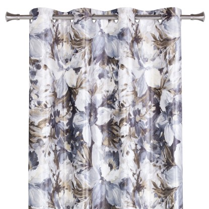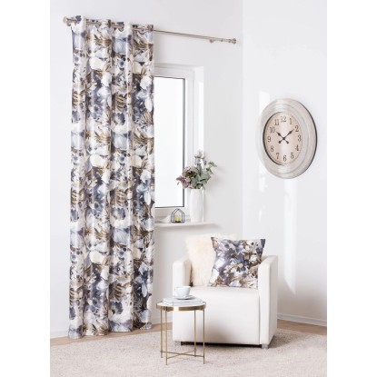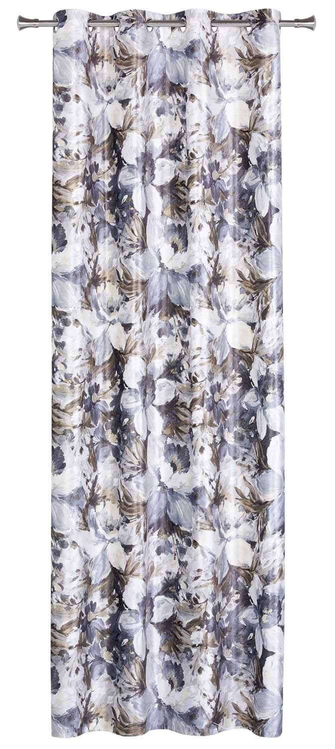 Zasłona MORI na przelotkach 140 cm x 260 cm szaro-oliwkowe kwiaty