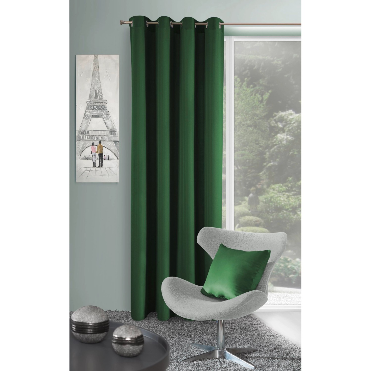 Zasłona RITA ciemnozielona 140 cm x 250 cm na przelotkach