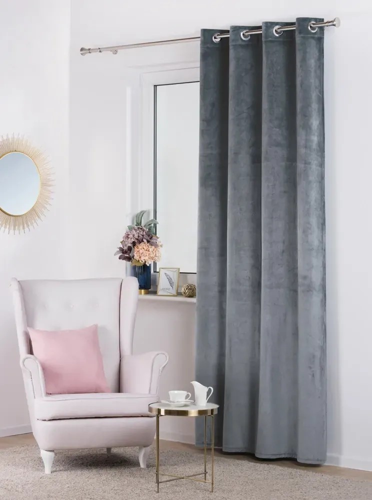 Zasłona VELVET szara 140 x 260 cm na przelotkach