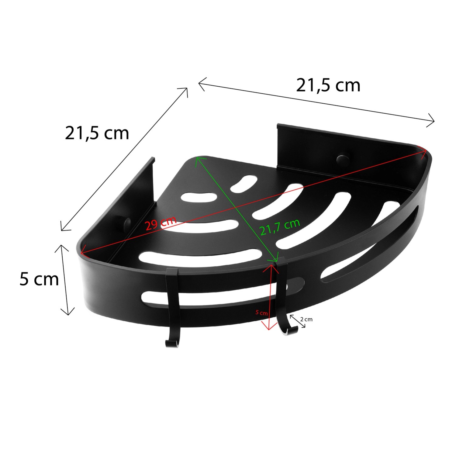 Pojedynczy, narożny koszyk na akcesoria łazienkowe. Koszyk wykonany jest z malowanego aluminium. Dobrze trzyma się gładkich powierzchni.