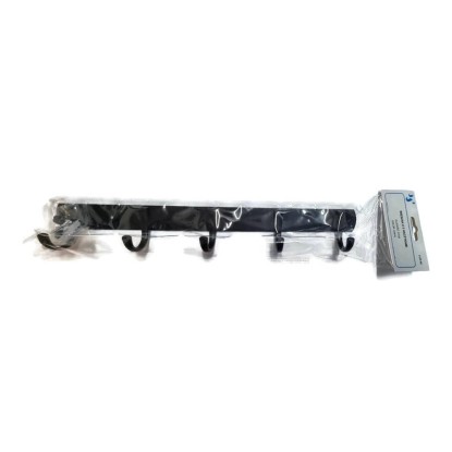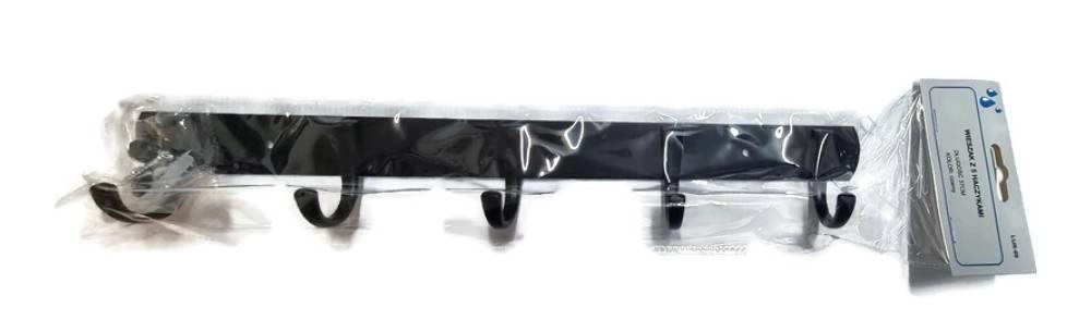 Praktyczny i estetyczny czarny wieszak o szerokości 37 cm z pięcioma haczykami do zawieszenia ręczników lub akcesoriów idealnie sprawdzi się w każdej łazience.