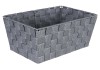 Pleciony koszyk idealny do przechowywania wszelkich drobiazgów. Doskonały zarówno do łazienki, jak i salonu czy sypialni. Pojemny, zgrabny i wielofunkcyjny, może być ozdobą półki, ale również praktycznym organizerem w szafce czy szufladzie. Koszyk zrobiony jest z poliestru i metalu.