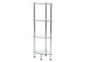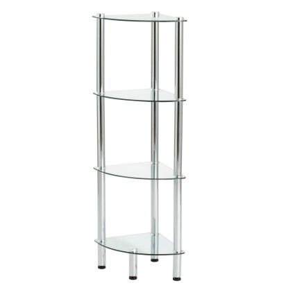 Regał wyposażony jest w cztery szklane półki, dzięki czemu pomieści wszelkie akcesoria niezbędne w łazience.