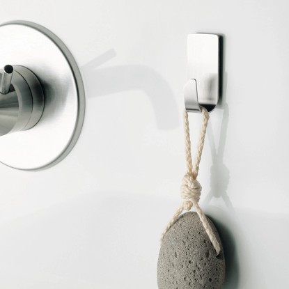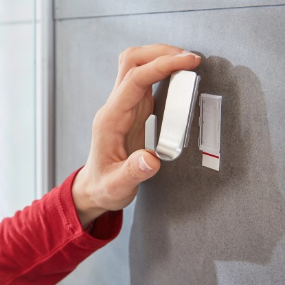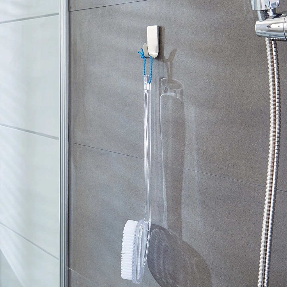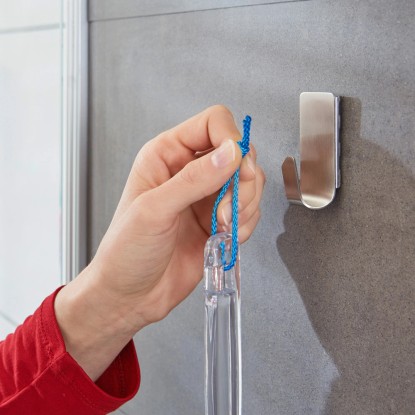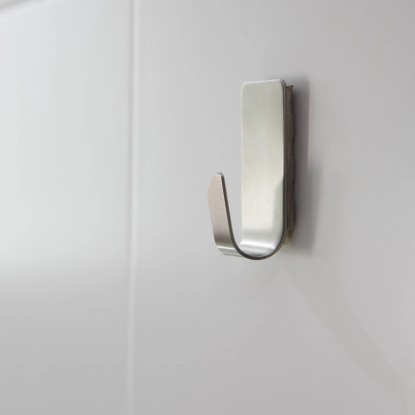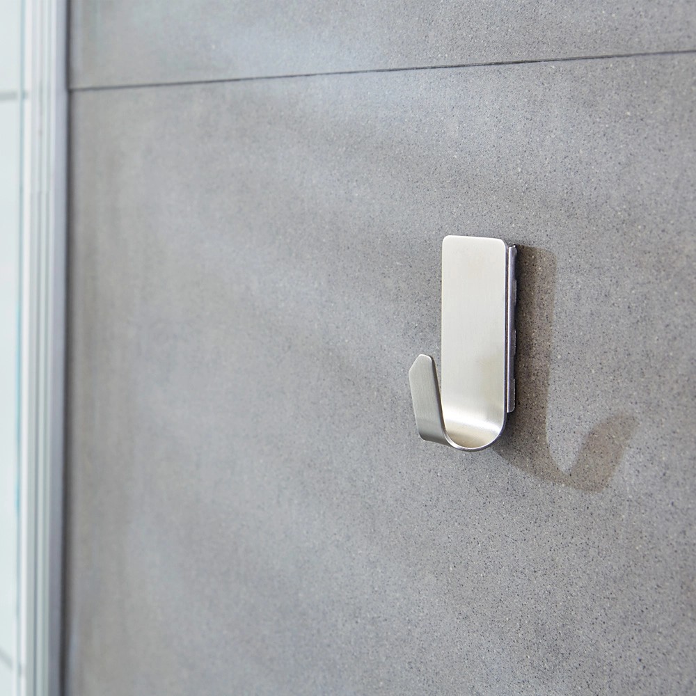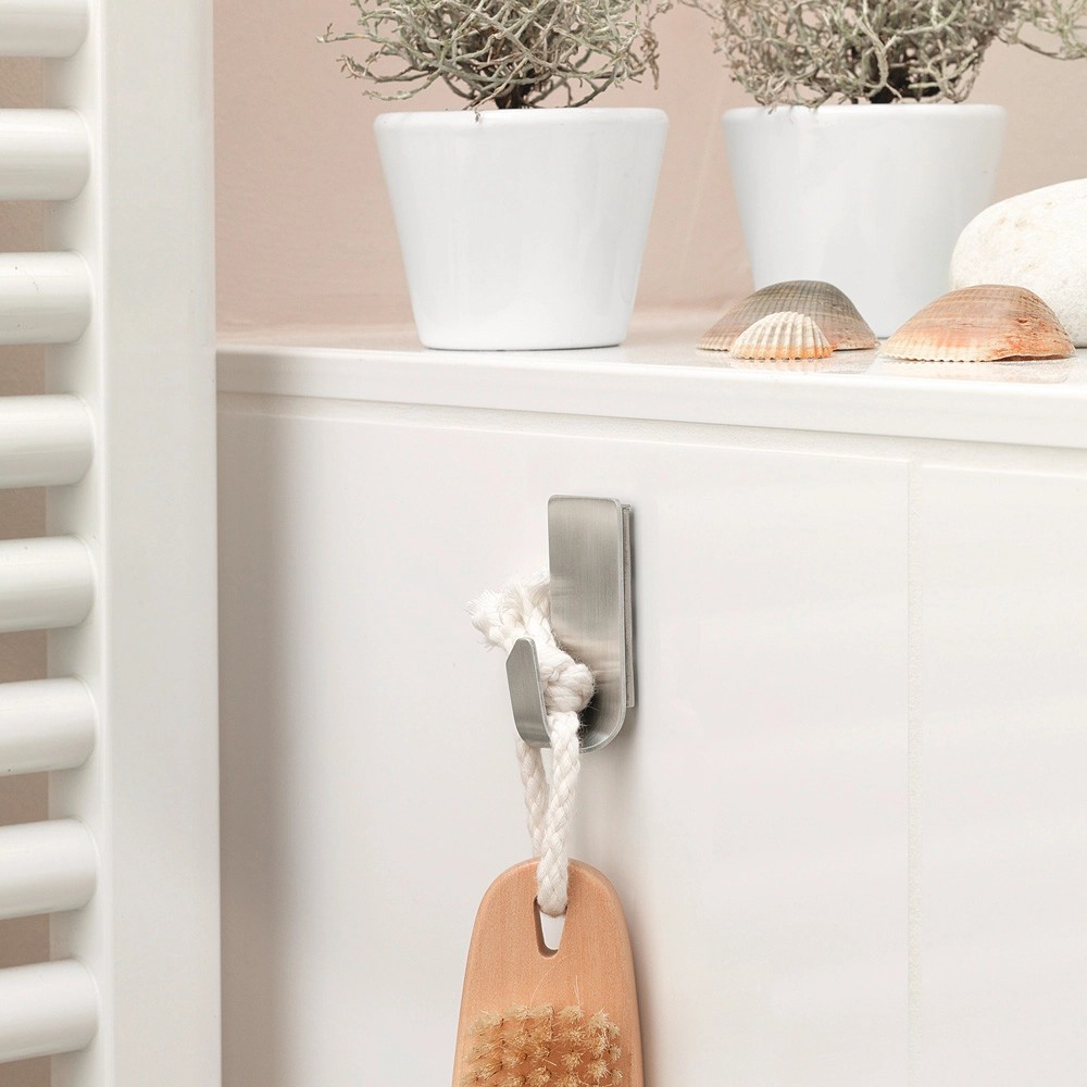 Pojedynczy wodoodporny Haczyk Powerstrips ze stali nierdzewnej marki Tesa. Samoprzylepny haczyk jest prosty w montażu i nie wymaga użycia narzędzi. Idealnie sprawdzi się w kuchni czy łazience, ponieważ przeznaczony jest do miejsc narażonych na wilgoć. Technologia Powerstrips gwarantuje proste usunięcie produktu bez pozostawiania śladów kleju. Zaletą haczyka jest możliwość jego ponownego przymocowania po wymianie plastrów mocujących. Wytrzymuje obciążenie do 2 kg. Świetnie nadaje się do mocowania na płytkach, szkle czy w pomieszczeniach wilgotnych lub bezpośrednio w kabinie prysznicowej. Funkcjonalność pozwoli na uporządkowanie akcesoriów w mieszkaniu, a nowoczesny wygląd będzie pasował do każdej aranżacji.