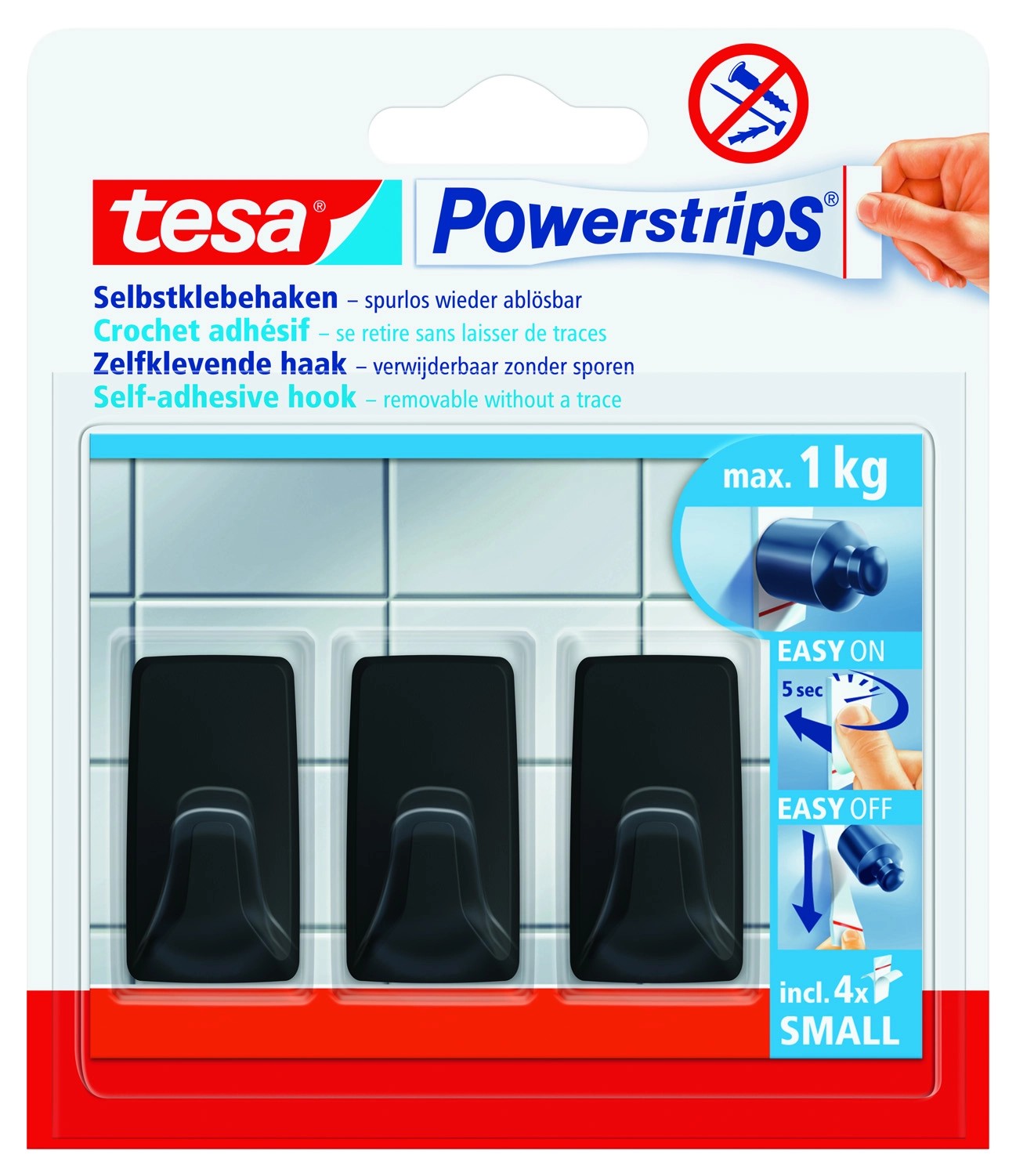 Tesa Haczyki Powerstip kwadratowe czarne 3 szt. S samoprzylepne