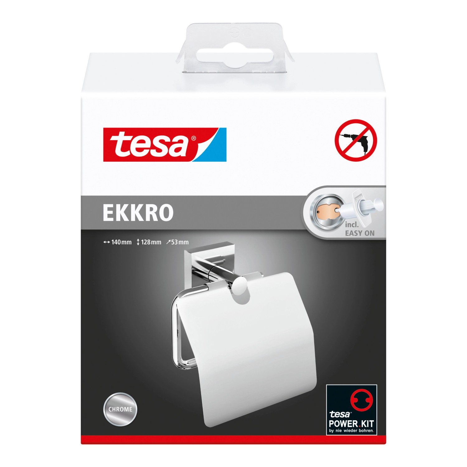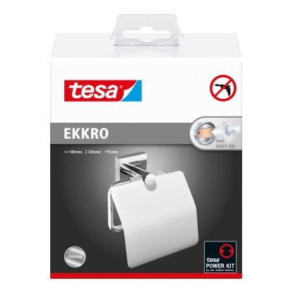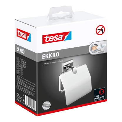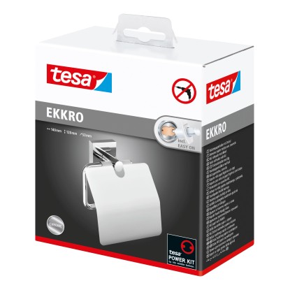 Uchwyt na papier toaletowy tesa Ekkro oferuje przekonujący design w swojej prostocie, podkreślony wykończeniem z wysokim połyskiem. Uchwyt jest również niezwykle praktyczny i niezbędny w łazience. Montaż jest łatwy i nie wymaga wiercenia. Zamiast tego, rozwiązanie klejowe zapewnia, że powierzchnie pozostają nienaruszone, a uchwyt można zdjąć bez pozostawiania śladów. Wymaga 12 godzin czasu schnięcia. Uchwyt można zamocować w innym miejscu za pomocą nowego adaptera BK20., Uchwyt na papier toaletowy z pokrywką z technologią tesa Power.Kit (wszystko w jednym rozwiązaniu montażowym), Wysoki połysk, chromowany metal, zaokrąglony styl, okrągła płyta ścienna, pokrywka z gładkimi krawędziami, Niezawodne trzymanie, wodoodporny, gwarantowany nierdzewny, Działa na płytkach, metalu, kamieniu naturalnym, marmurze, betonie, drewnie, szkle i wielu rodzajach plastiku, Nie działa na tapecie, stiuku i innych powierzchniach z powłoką antyadhezyjną, Zdejmowalny bez śladu i ponownie używalny z adapterem BK20, Bez wiercenia, Wymiary produktu: 52,5mm x 140mm x 128mm