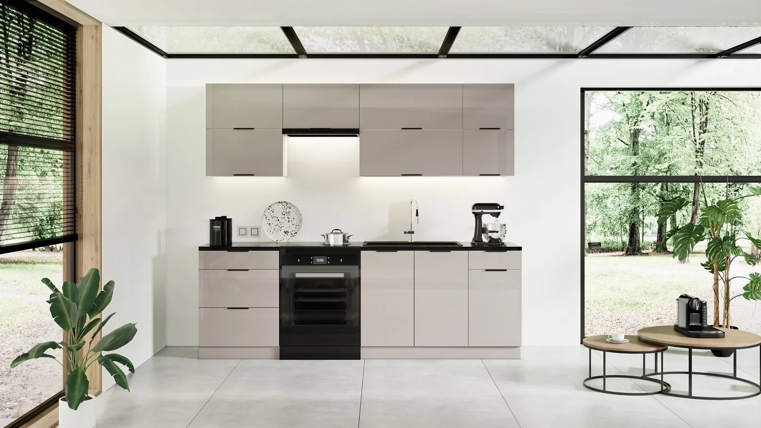 Black and White Style Zestaw mebli kuchennych VICKY Kaszmir 240 cm 7 el.