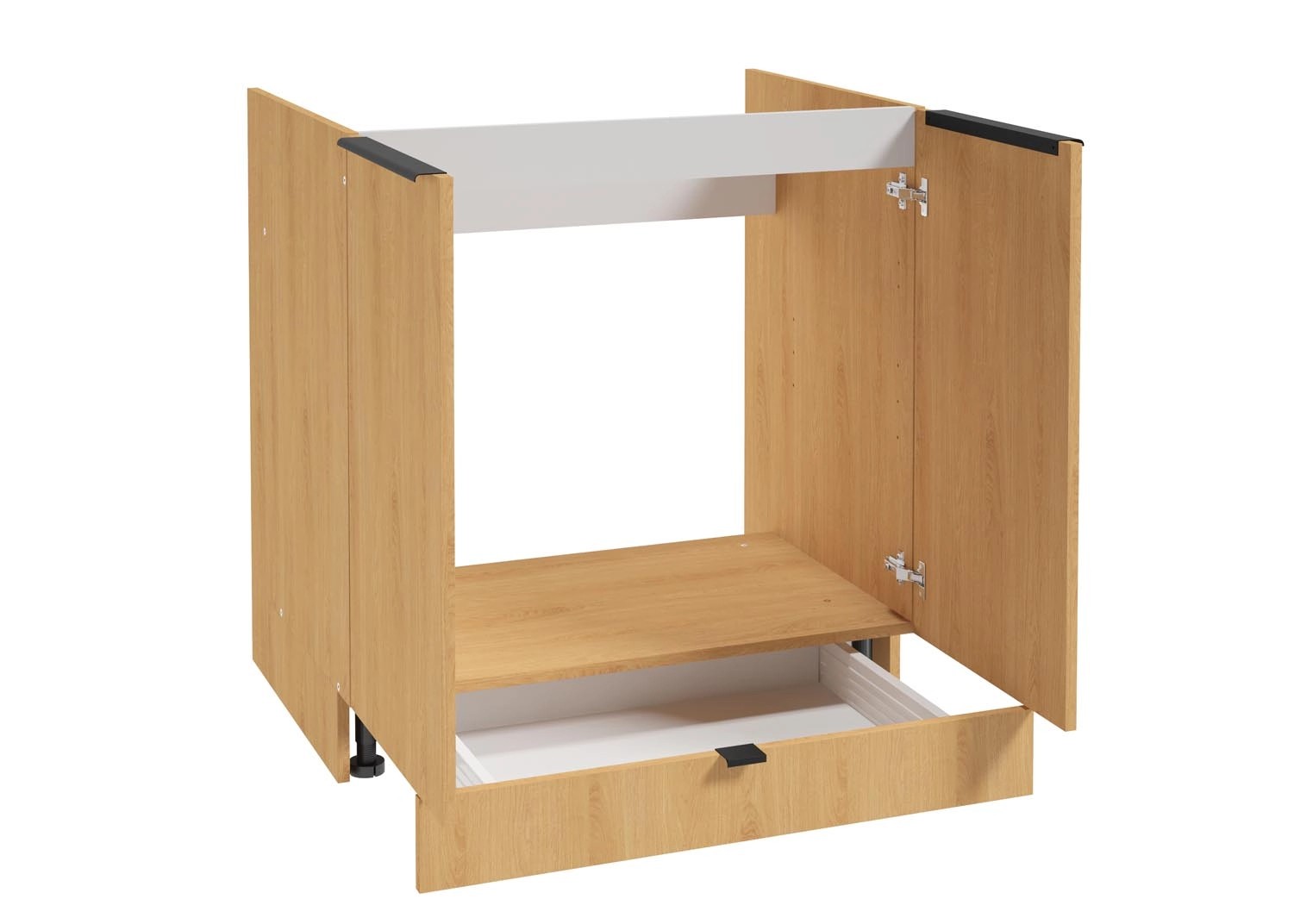 Idealne rozwiązanie dla posiadaczy niewielkich przestrzeni. Szafkę można wykorzystać zarówno do zabudowy zlewu, jak i do przechowywania produktów spożywczych, naczyń i akcesoriów kuchennych. Dodatkowo, szafka została wyposażona w szufladę ukrytą w cokole.