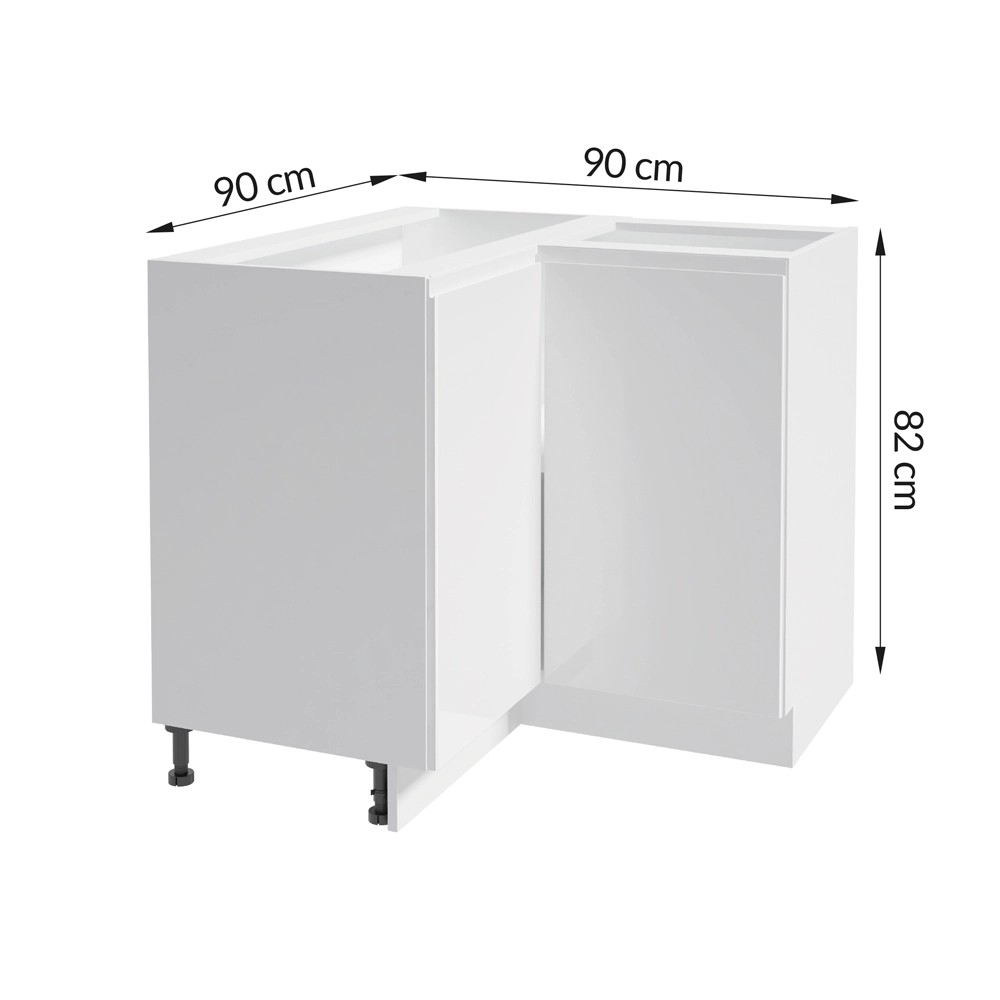 Szafka dolna narożna z serii mebli Parma w kolorze białym o szerokości 90 cm, marki Fig