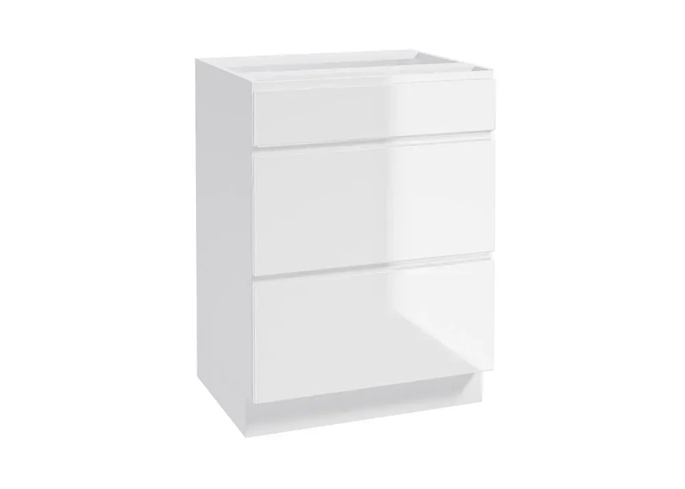 Czysta forma, minimalistyczny styl i ponadczasowa elegancja - to najważniejsze cechy mebli kuchennych z kolekcji Parma. Szafka przeznaczona jest do zabudowy kuchni pod blat w komplecie z pozostałymi meblami z kolekcji Parma. Szafka wyposażona jest w trzy szerokie i głębokie szuflady o różnej wysokości. Posiada regulowane nóżki, dzięki którym stoi stabilnie, nawet na nierównej podłodze. Wypinany cokół dolny pozwala ukryć nóżki i dopasować mebel do reszty kuchennej zabudowy.