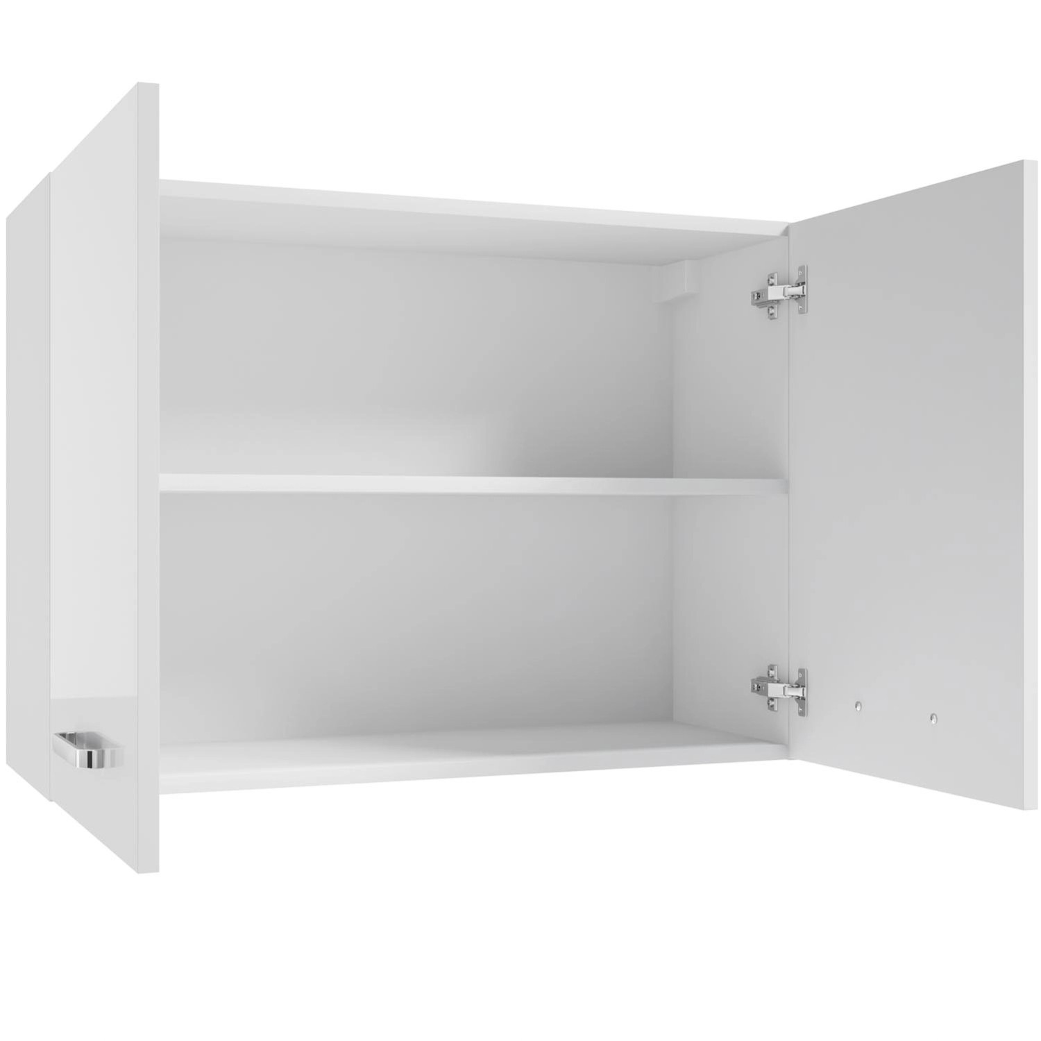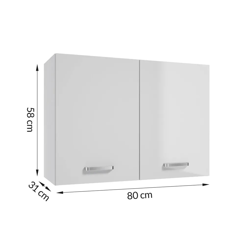 # Szafka wisząca 80 cm # Dwudrzwiowa, otwierana na bok, lakierowana na kolor biały połysk # Z metalowym, chromowanym uchwytem